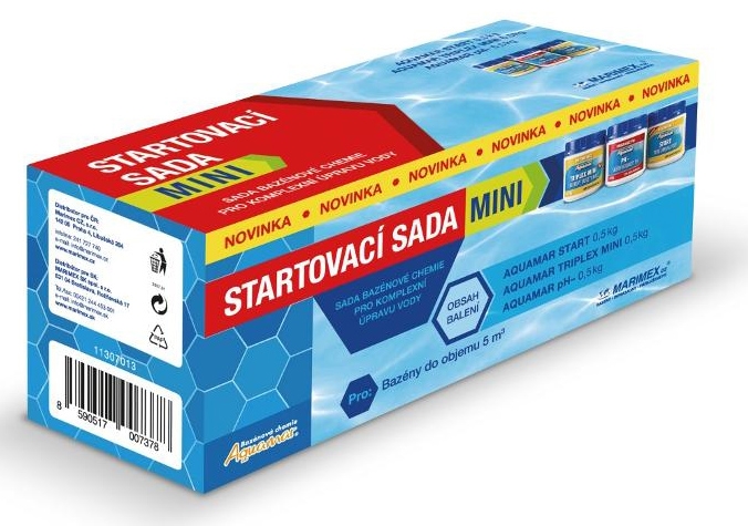 Chemický set Start Mini je ideální pro počáteční ošetření bazénové vody malých bazénů. Obsahové vyvážení setu ocení začátečníci i zkušení uživatelé. Start Mini obsahuje: Start pro počáteční napuštění vody, Triplex Mini pro průběžnou péči a pH mínus pro regulaci kyselosti vody.