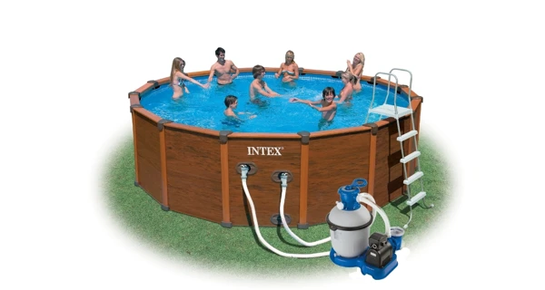 Bazén s kovovou konstrukcí a obkladem s imitací dřeva. Tento rám je silnější než tradiční kulaté kovové rámy, stejně tak jeho designově hezky řešená imitace dřevěného obkladu. Je jednoduše sestavitelný a jednotlivé kusy lépe zapadnout do sebe. Není potřeba žádných dalších upínacích kolíků. Stačí pouze sestavit kovovou a dřevěnou konstrukci a bazén Dakota napustit vodou. Vypouštění zajišťuje vypouštěcí ventil. Díky své pružné konstrukci je bazén vhodný pro rodiny s dětmi. Upoutá svou jednoduchou montáží .