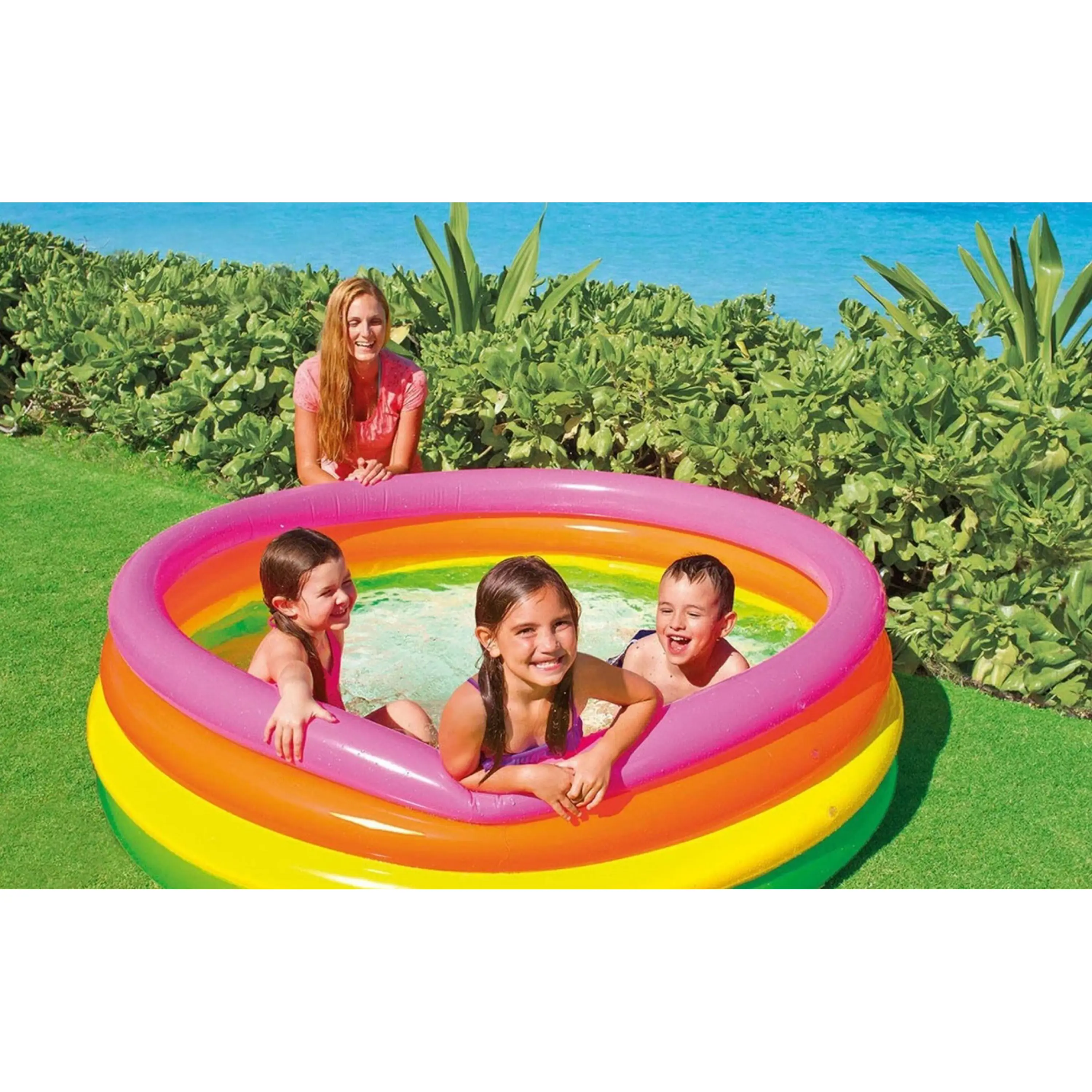 Nafukovací bazén Duha je vyroben z testovaného masivního vinylu 0,23 mm.