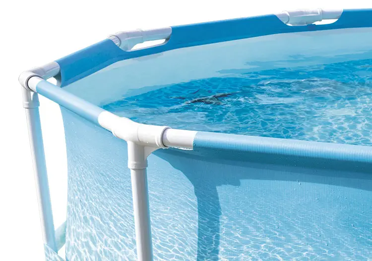 Bazénovou plachtu vypíná pevná kovová konstrukce s plastovými T-spoji, která umožňuje, aby byly bazény vyráběny i ve velkých rozměrech. Široká vodní plocha tak poskytuje dostatečný prostor ke koupání.