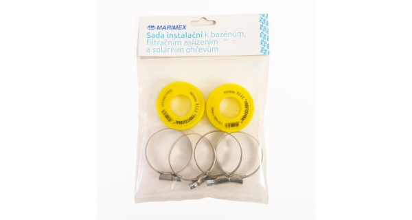 Bazénový set obsahuje všechny potřebné díly na propojení bazénu a filtrace (např. hadice a pásky na upevnění hadic).