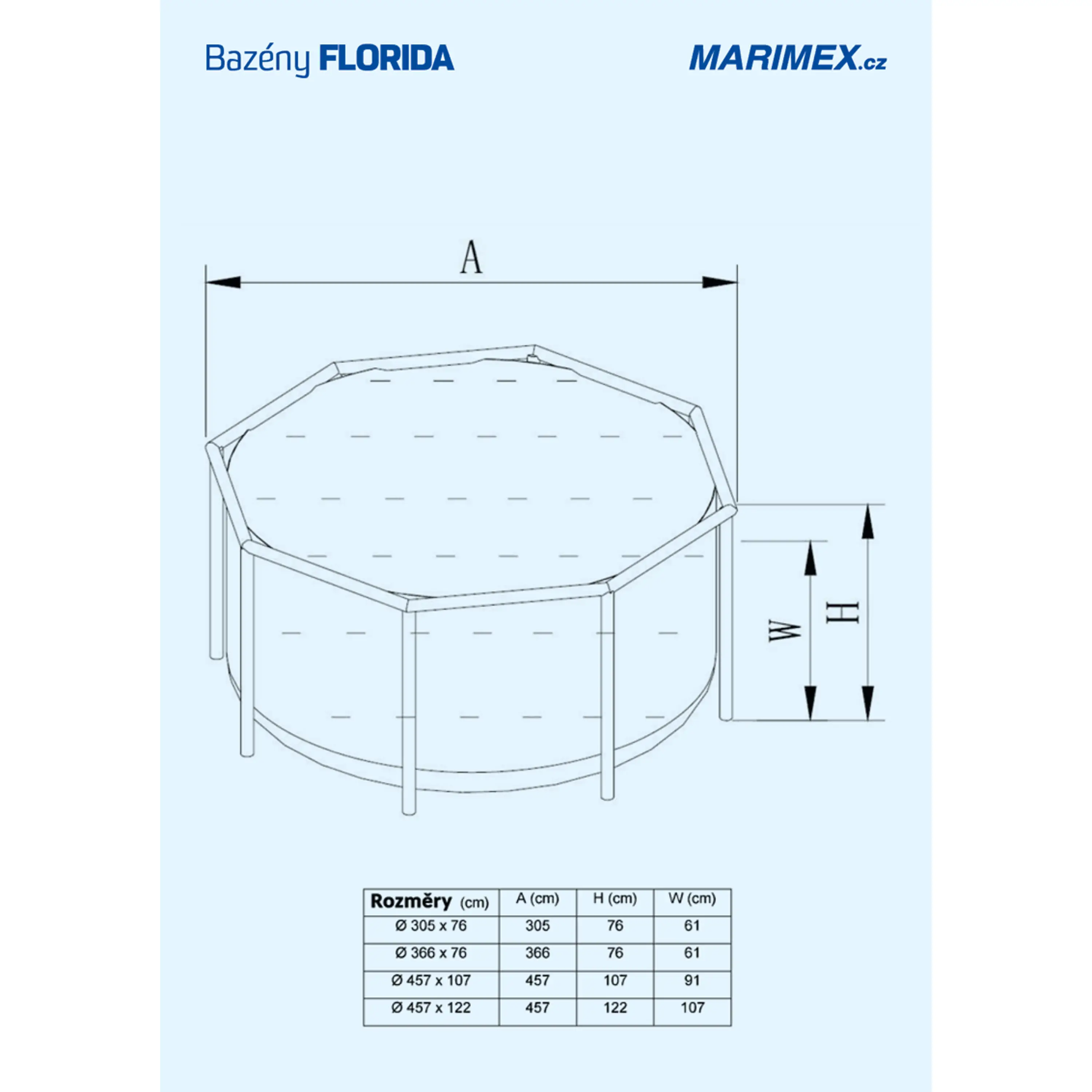 Bazény Florida jsou komfortní nadzemní bazény s velkým průměrem umožňujícím skutečné plavání. Díky unikátnímu kovovému rámu jsou dokonale stabilní. Mají příjemný design, který bude skvěle ladit s každou zahradou. Montáž je rychlá, jednoduchá a pohodlná. Bazény Florida nevyžadují přes zimu žádnou údržbu, na podzim je stačí složit a uskladnit.