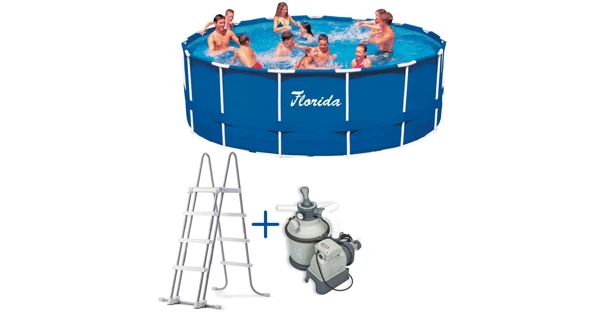 Bazén Florida se řadí mezi velmi oblíbené nadzemní bazény v České republice. Koupání ve vlastním velkém bazénu si může dopřát opravdu každý. Předností bazénu Florida je výhodná cena, snadná údržba. stabilita konstrukce, široká hladina vody i snadné zprovoznění. Stačí jen připravit místo na bazén, rozvinout bazénovou podložku, bazén rozbalit, sestavit podpěrnou konstrukci, na kterou se navlékne bazénová folie. Od vybalení bazénu můžete do 30 minut napouštět vodu. Bazén je nutné po skončení bazénové sezony vyčistit, vypustit a uklidit na suché, nemrznoucí místo. Správnou údržbou prodloužíte životnost bazénu. Doporučujeme bazén po koupání zakrývat krycí plachtou.