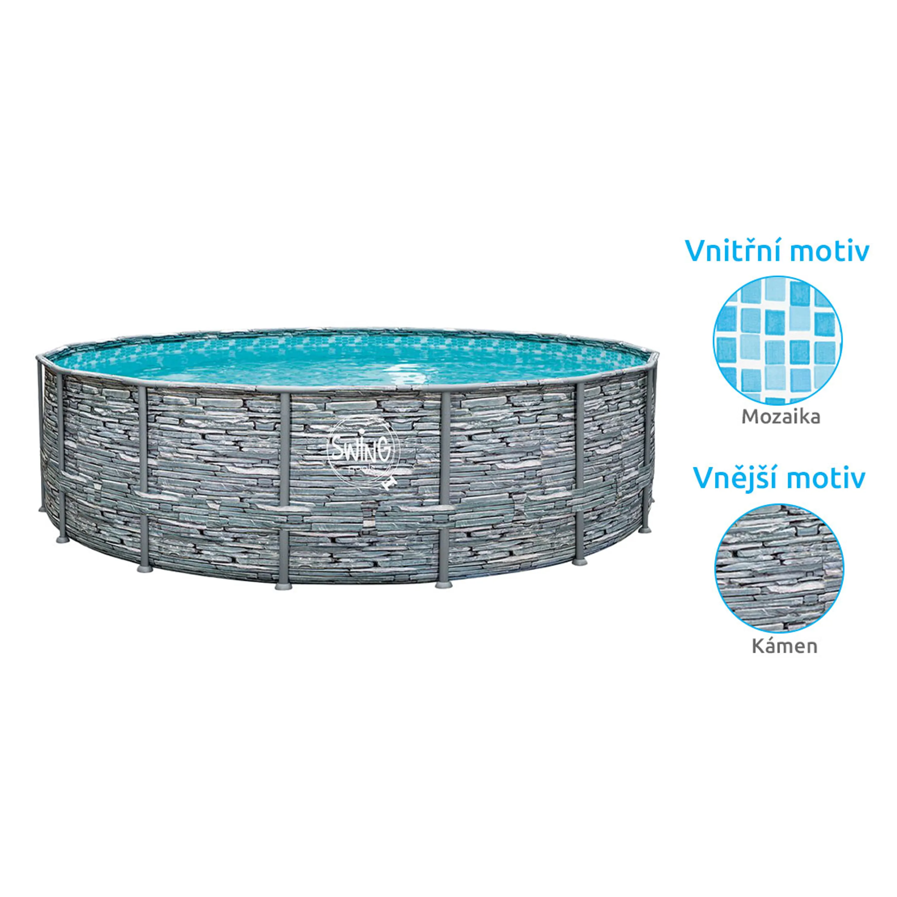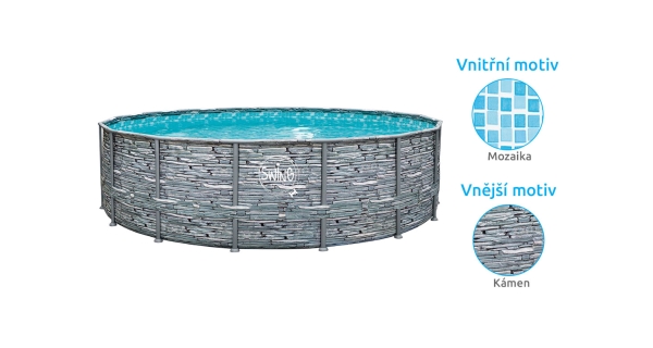Bazén má boční stěny vyrobeny z pružného a pevného 3vrstvého PVC materiálu. Vzpěry jsou galvanizované se zvýšenou odolností proti korozi.