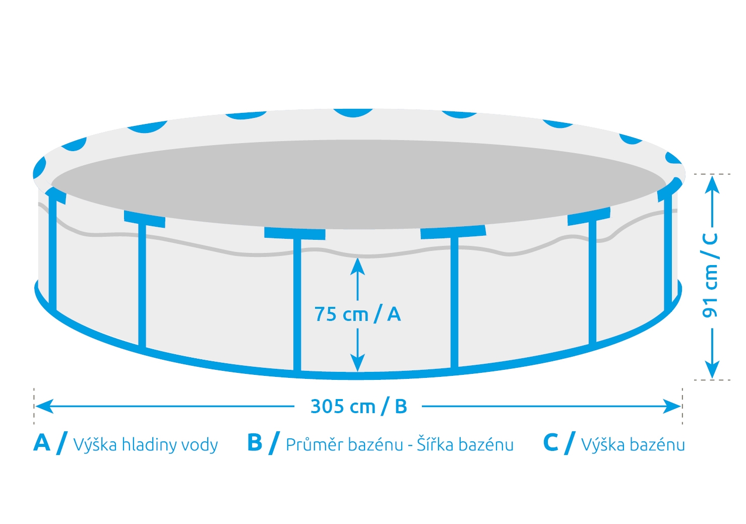 Stabilita a velikostBazénovou plachtu vypíná pevná kovová konstrukce, která umožňuje, aby byly bazény vyráběny i ve velkých rozměrech. Široká vodní plocha tak poskytuje dostatečný prostor ke koupání. |