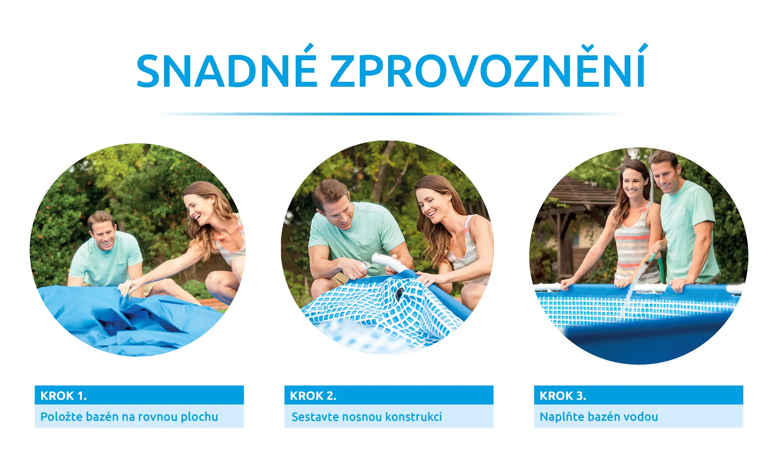 Bazén Marimex Florida se řadí mezi velmi oblíbené nadzemní bazény v České republice. Koupání ve vlastním velkém bazénu si může dopřát opravdu každý. Hlavním benefitem bazénu Florida je výhodná cena, snadná údržba, stabilita konstrukce, široká hladina vody i snadné zprovoznění. Stačí jen připravit místo na bazén, rozvinout bazénovou podložku, bazén rozbalit, sestavit podpěrnou konstrukci, na kterou se navlékne bazénová folie. Od vybalení bazénu můžete do 30 minut napouštět vodu.