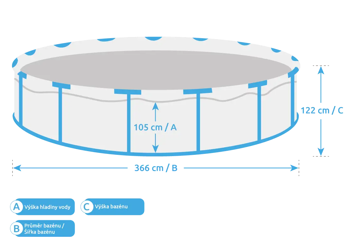 Stabilita a velikostBazénovou plachtu vypíná pevná kovová konstrukce, která umožňuje, aby byly bazény vyráběny i ve velkých rozměrech. Široká vodní plocha tak poskytuje dostatečný prostor ke koupání. |
