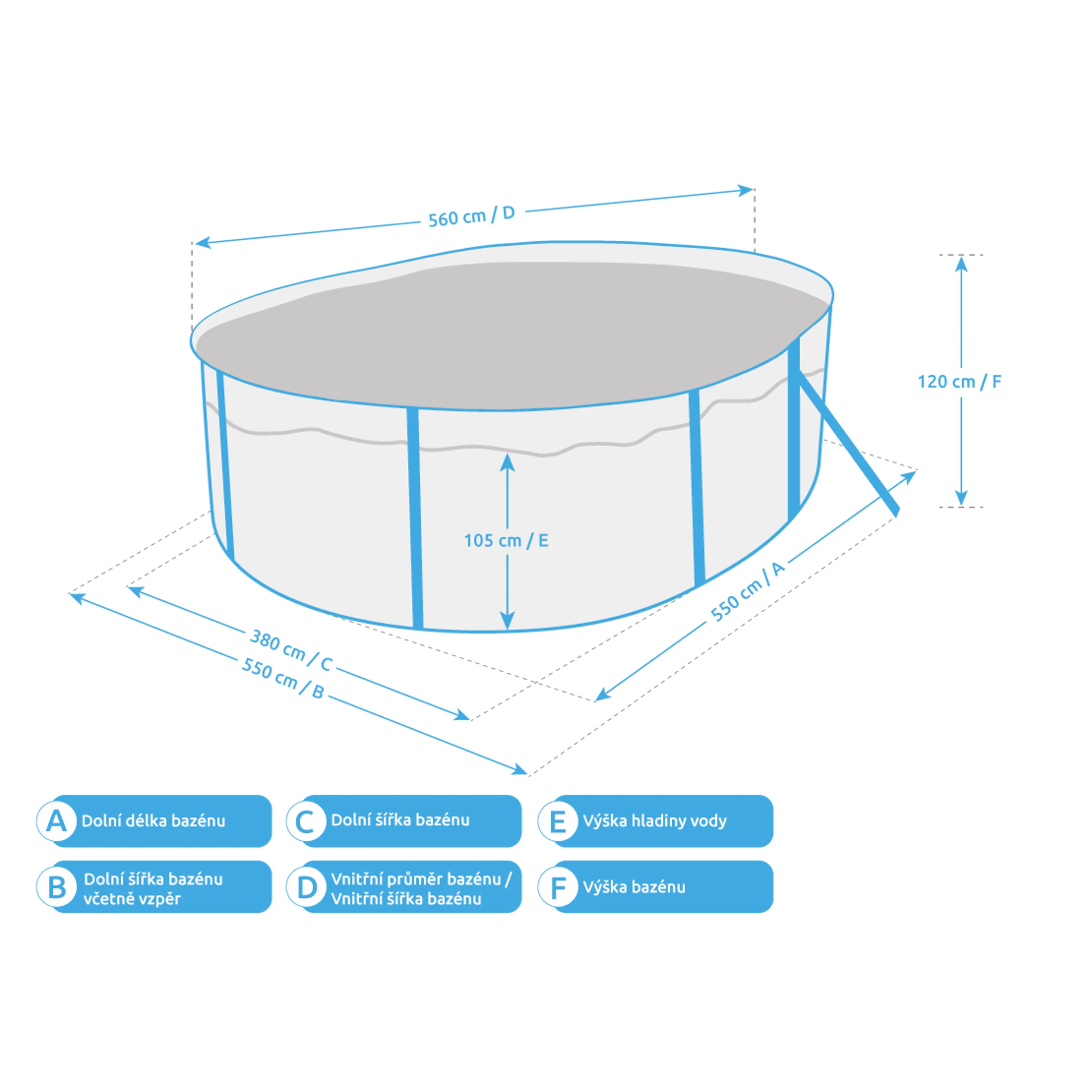 Rozměry včetně vzpěr: 5,6 x 5,5 m