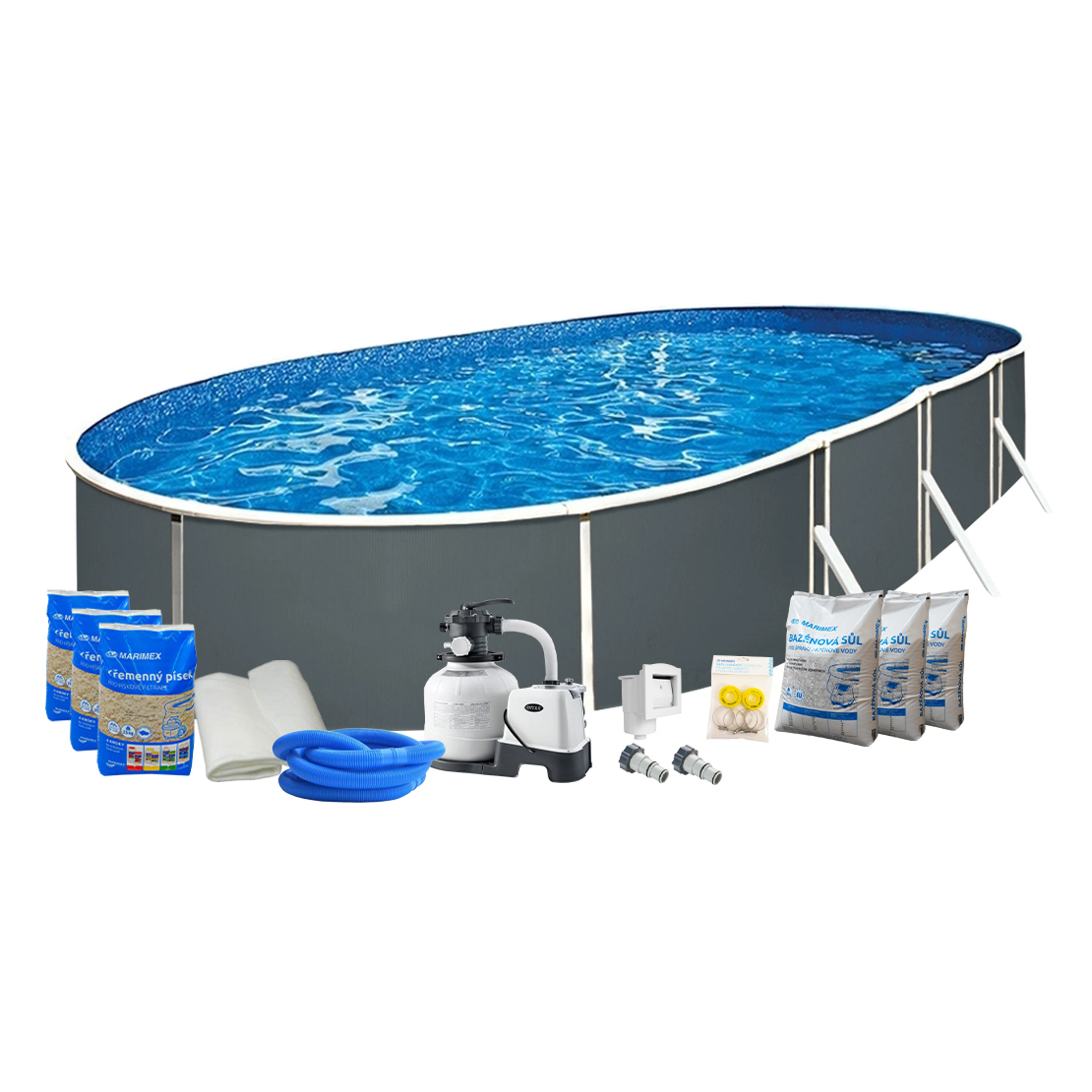 Bazénový set obsahuje všechny potřebné díly na propojení bazénu a filtrace (např. hadice, pásky na upevnění hadic, apod.).