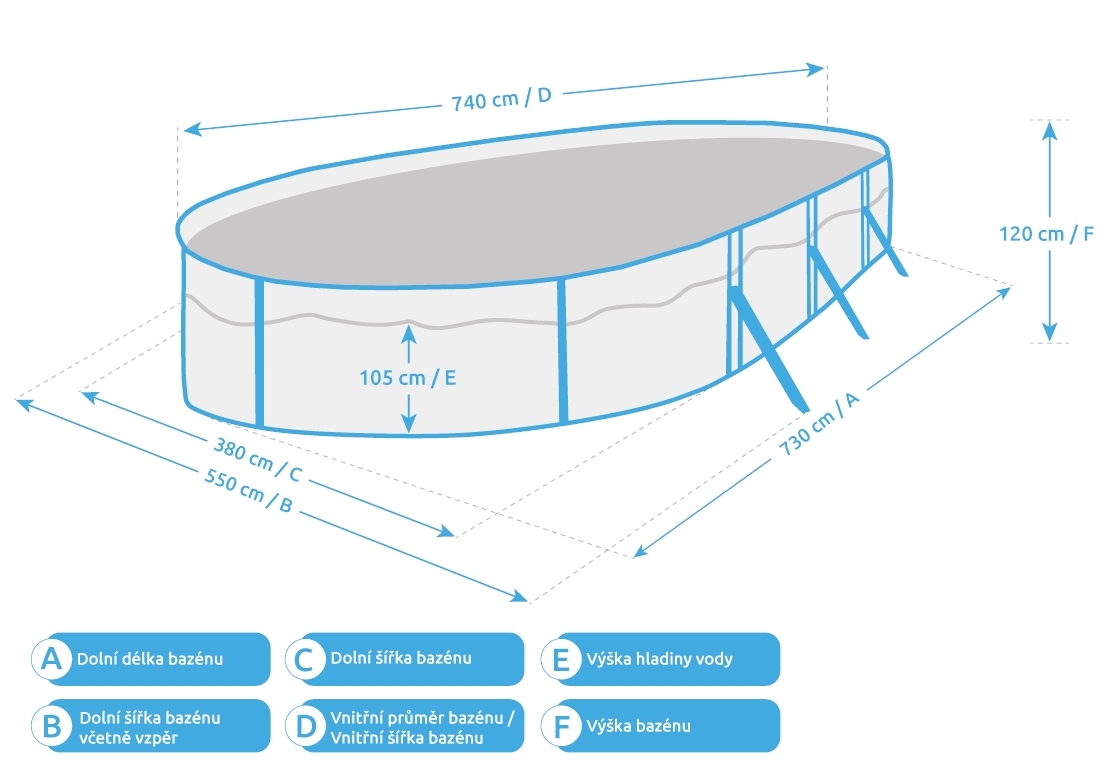 Oválný bazén, který patří mezi nejoblíbenější z celé řady bazénů Orlando Premium. Oválné bazény, díky svému tvaru, poskytují dostatečnou délku vodní plochy, ale při tom na stranách bazénů zůstává dostatek místa například pro příjemné posezení vybavené zahradním nábytkem a slunečníkem.