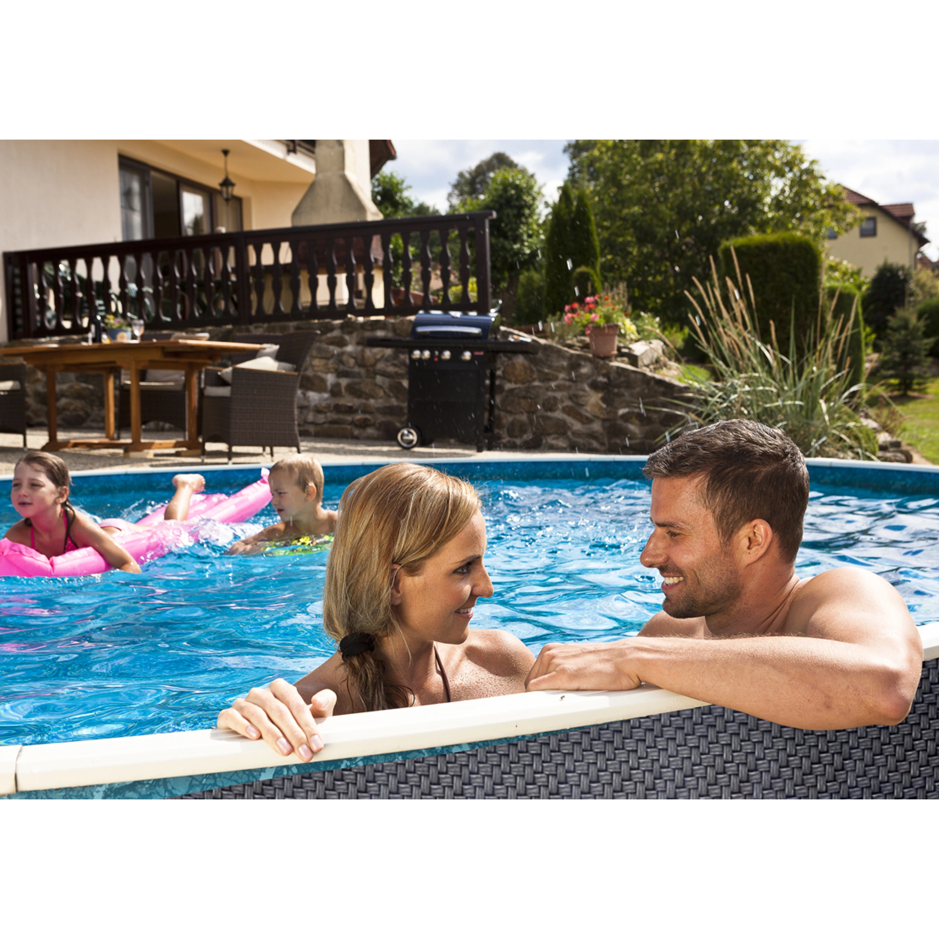 V případě dodržení odborných pokynů na úpravu pozemku je možné bazén částečně, nebo úplně zapustit do země. Vznikne tak dojem upravené zahrady bez narušení terénu.