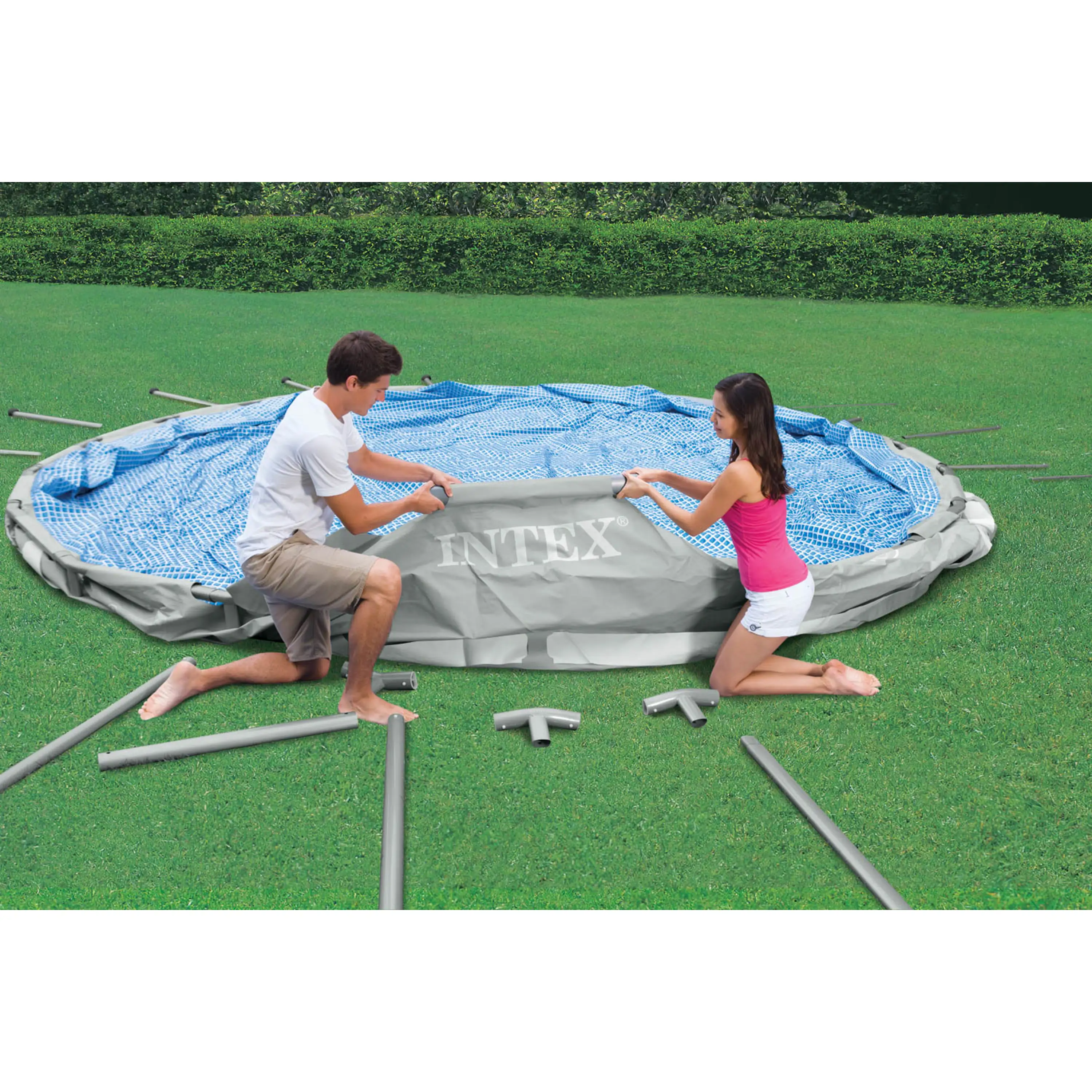 Bazénovou plachtu vypíná pevná kovová konstrukce, která umožňuje, aby byly bazény vyráběny i ve velkých rozměrech. Široká vodní plocha tak poskytuje dostatečný prostor ke koupání.