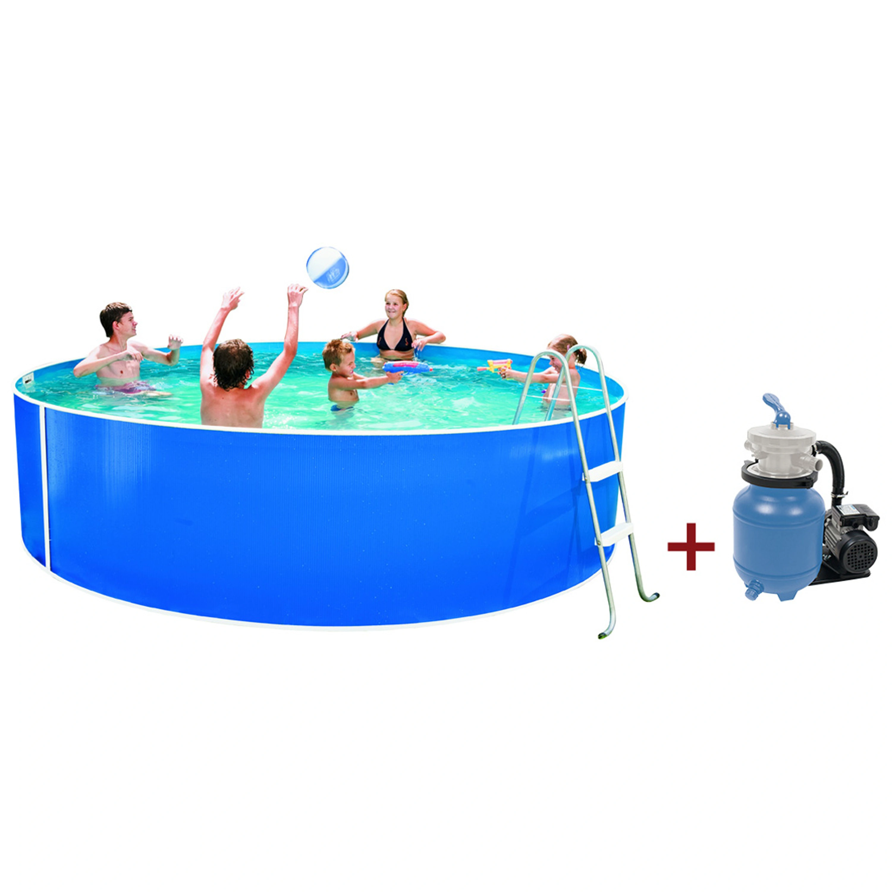 K bazénu je dodávána písková filtrace ProStar 3 o výkonu 3,8 m3/hod., včetně hadic, spojovacího materiálu a průchodek stěnou bazénu. Písková filtrace má 6ti cestný ventil, průtok 3,8 m3/hod., nádobu na 10 kg písku. Příkon filtrace je 200W.