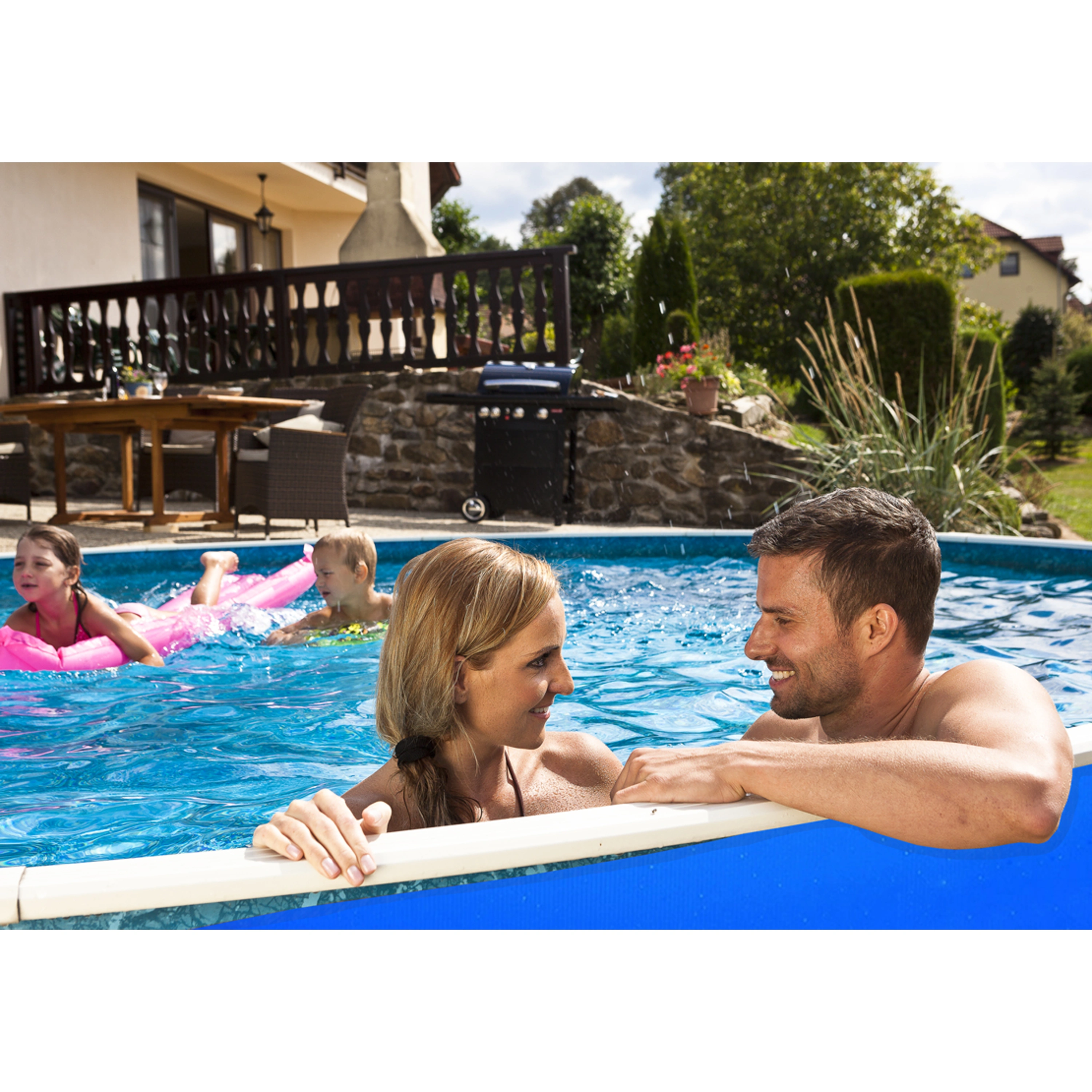 Další předností bazénu Orlando je stabilní a pevná konstrukce, galvanizovaná bazénová stěna, široká hladina vody i snadné zprovoznění. Stačí jen připravit místo na bazén, rozvinout bazénovou podložku, bazén rozbalit a sestavit. Od vybalení bazénu můžete do 120 minut napouštět vodu. Stěny bazénu jsou vyrobeny z ocelového plechu s antikorozní úpravou, bazénová folie je odolná proti mrazu. Doporučujeme bazén po koupání zakrývat krycí plachtou. Bazénová folie je výměnná - při poškození bazénu si ji můžete koupit jako náhradní díl.