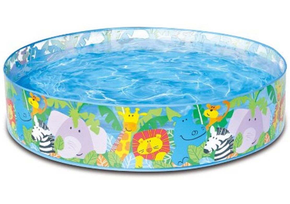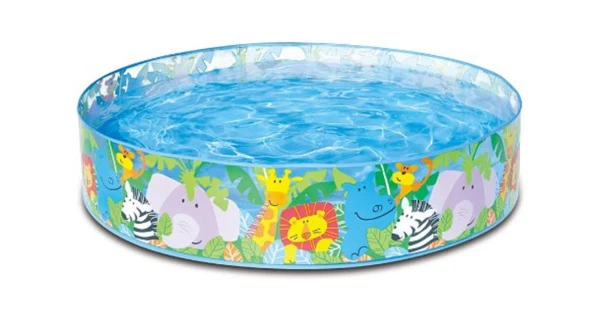 Bazén Safari je ideální řešení v horkých letních dnech pro nejmenší. Nabízí rychlé osvěžení a spousty zábavy. Na vnější straně jsou zobrazeny motivy zvířátek.