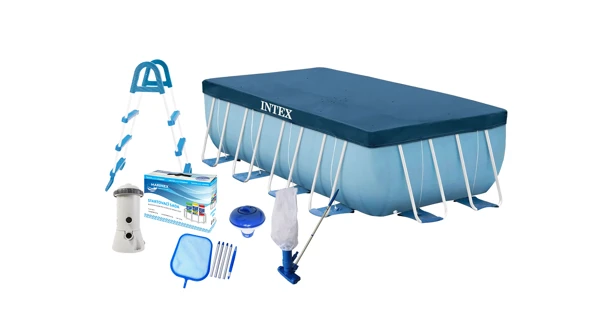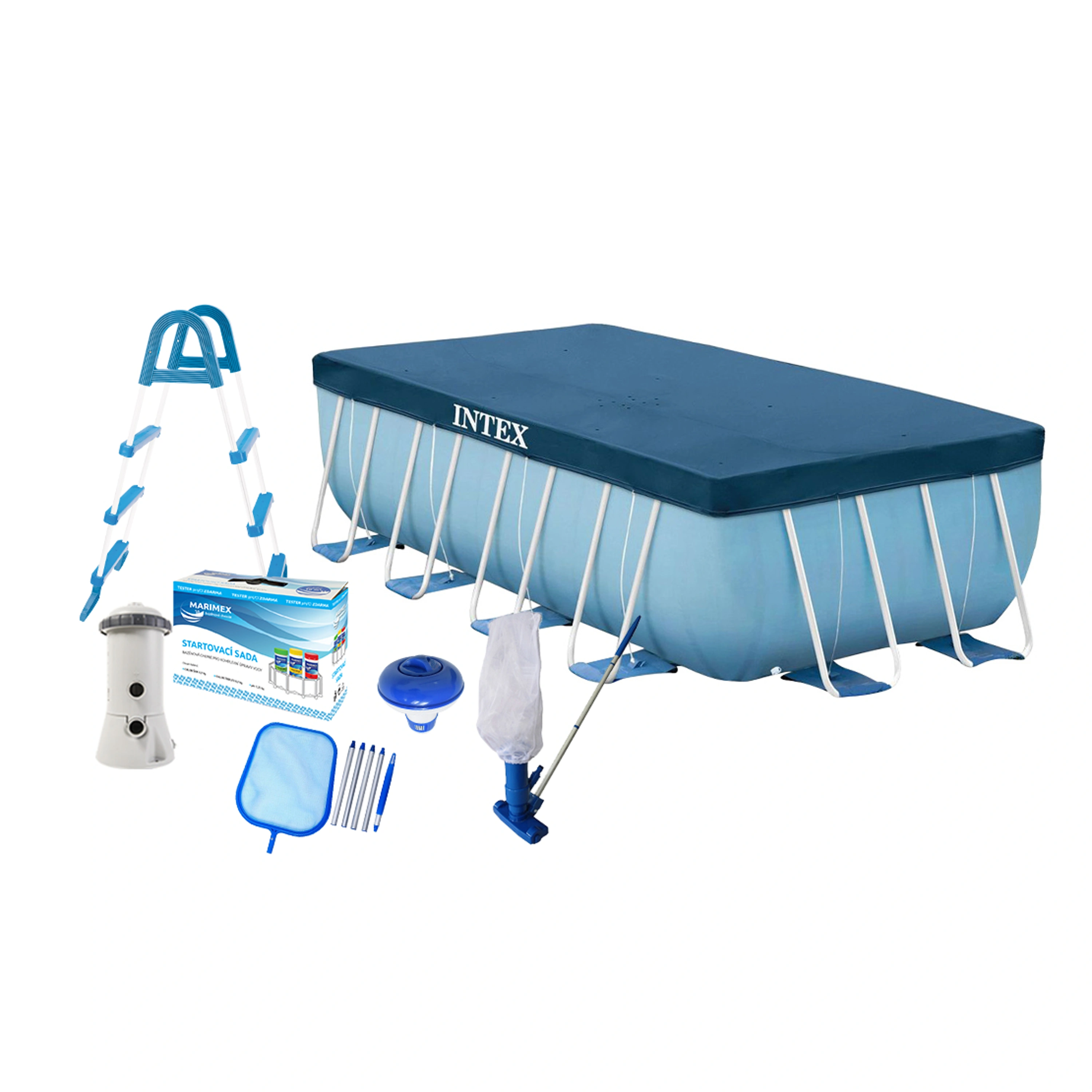 Bazénový set obsahuje všechny potřebné díly na propojení bazénu a filtrace (např. hadice, pásky na upevnění hadic, kartušovou vložku filtrace apod.)