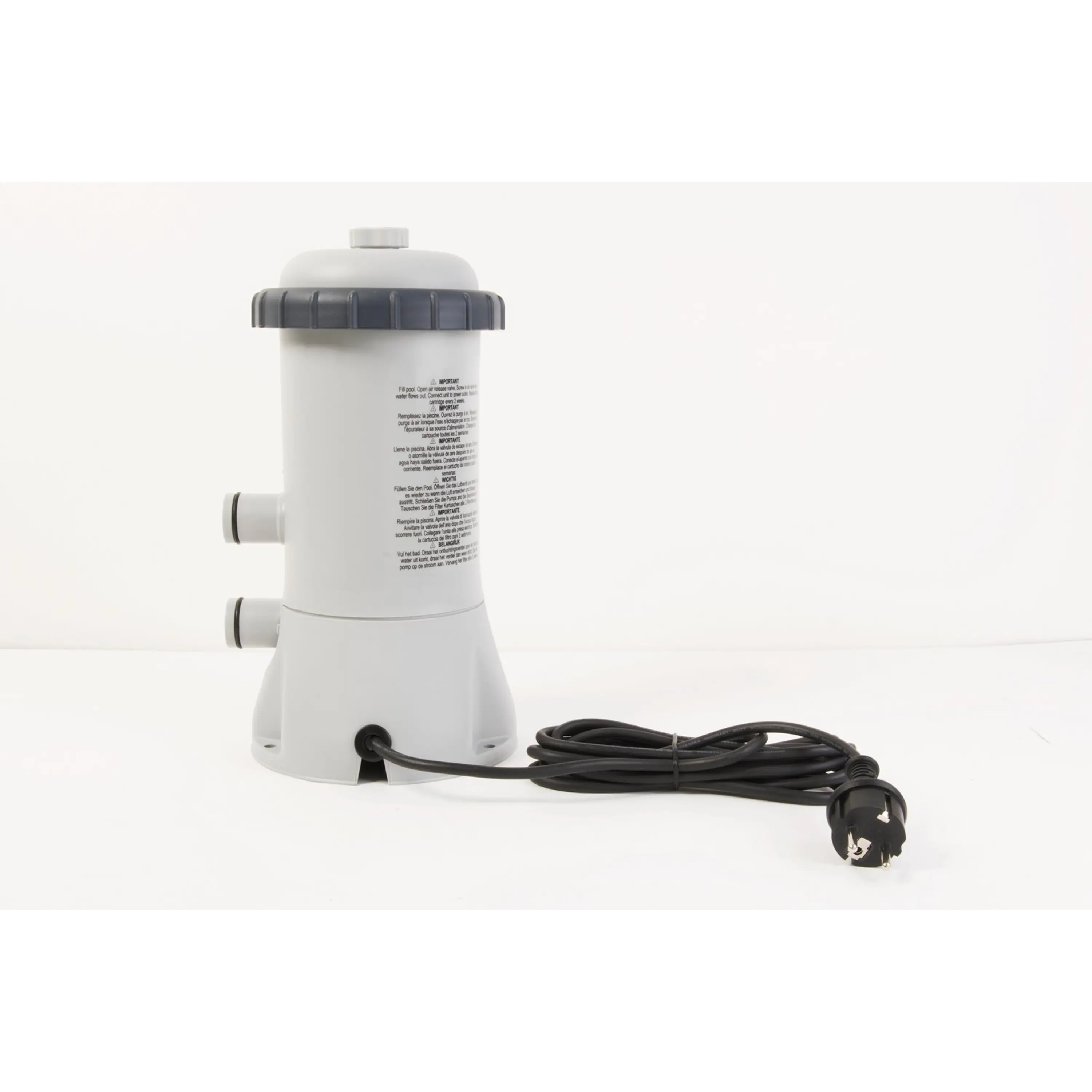 K bazénu je dodávána kartušová filtrace o výkonu 2 m3/hod. Pro napojení filtrace jsou připraveny průchody stěnou bazénu o průměru 32 mm.