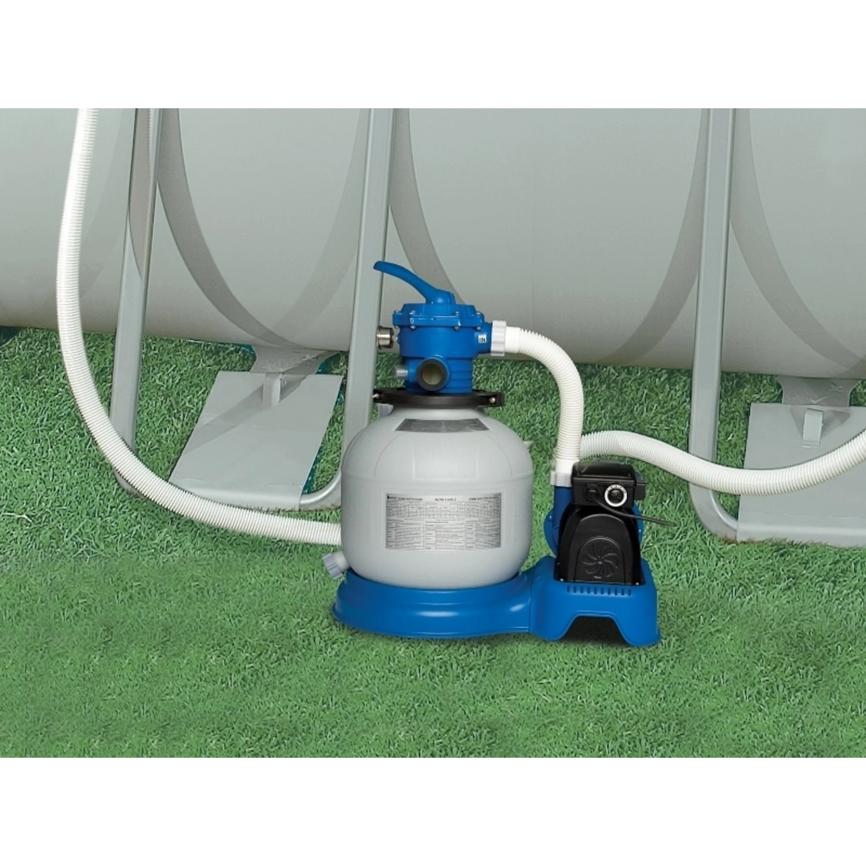 K bazénu je dodávána písková filtrace Sand 4 o výkonu 4 m3/hod., včetně hadic, spojovacího materiálu a průchodek stěnou bazénu. Pro napojení filtrace jsou připraveny průchody stěnou bazénu o průměru 32 mm (5/4"). Standardně se k pískové filtraci filtrační písek nedodává, je třeba ho objednat zvlášť.