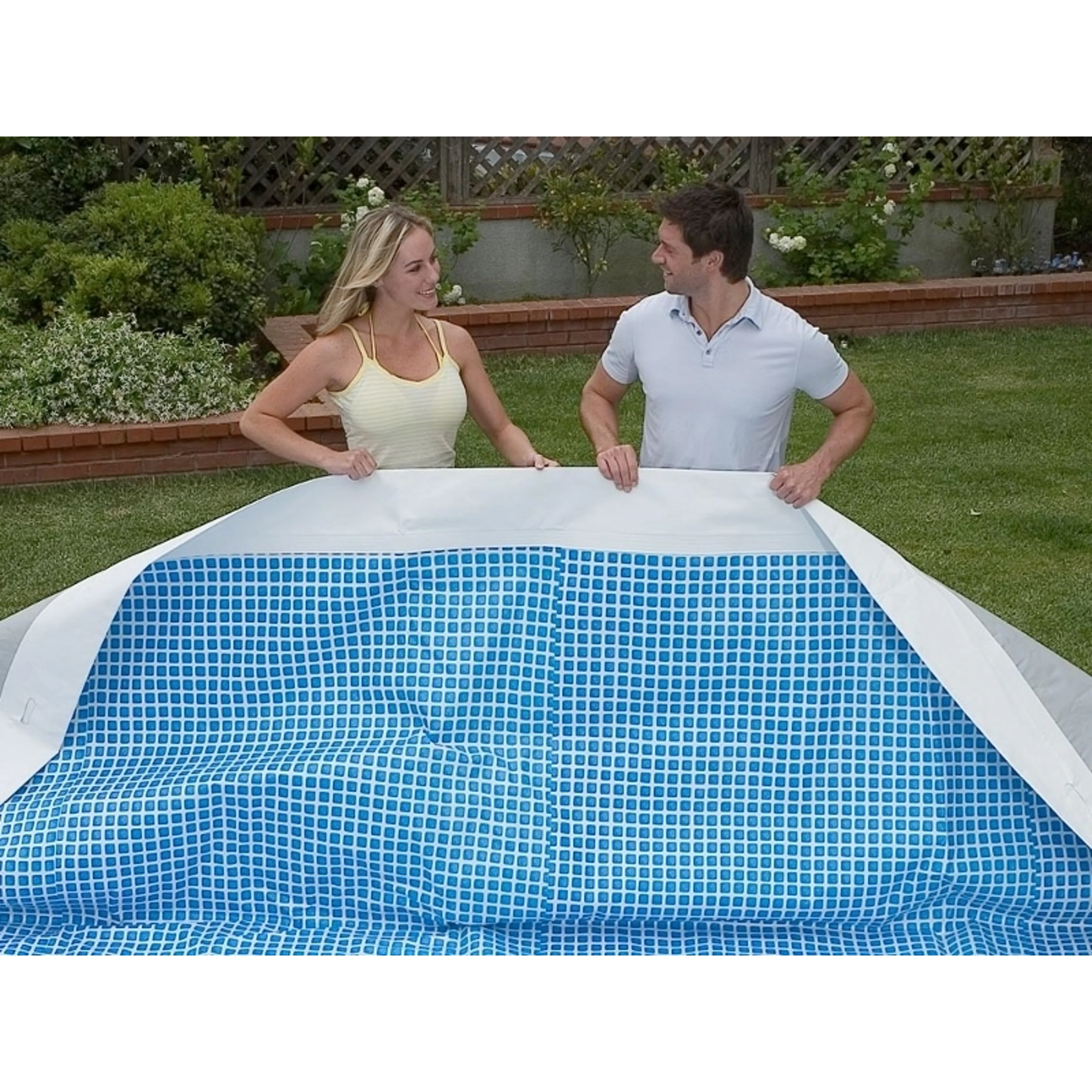 Uvedené rozměry bazénu jsou pouze orientační a ovlivnit je může rovnost podkladu či objem napuštěné vody. Povolená výrobní odchylka je 5 %.