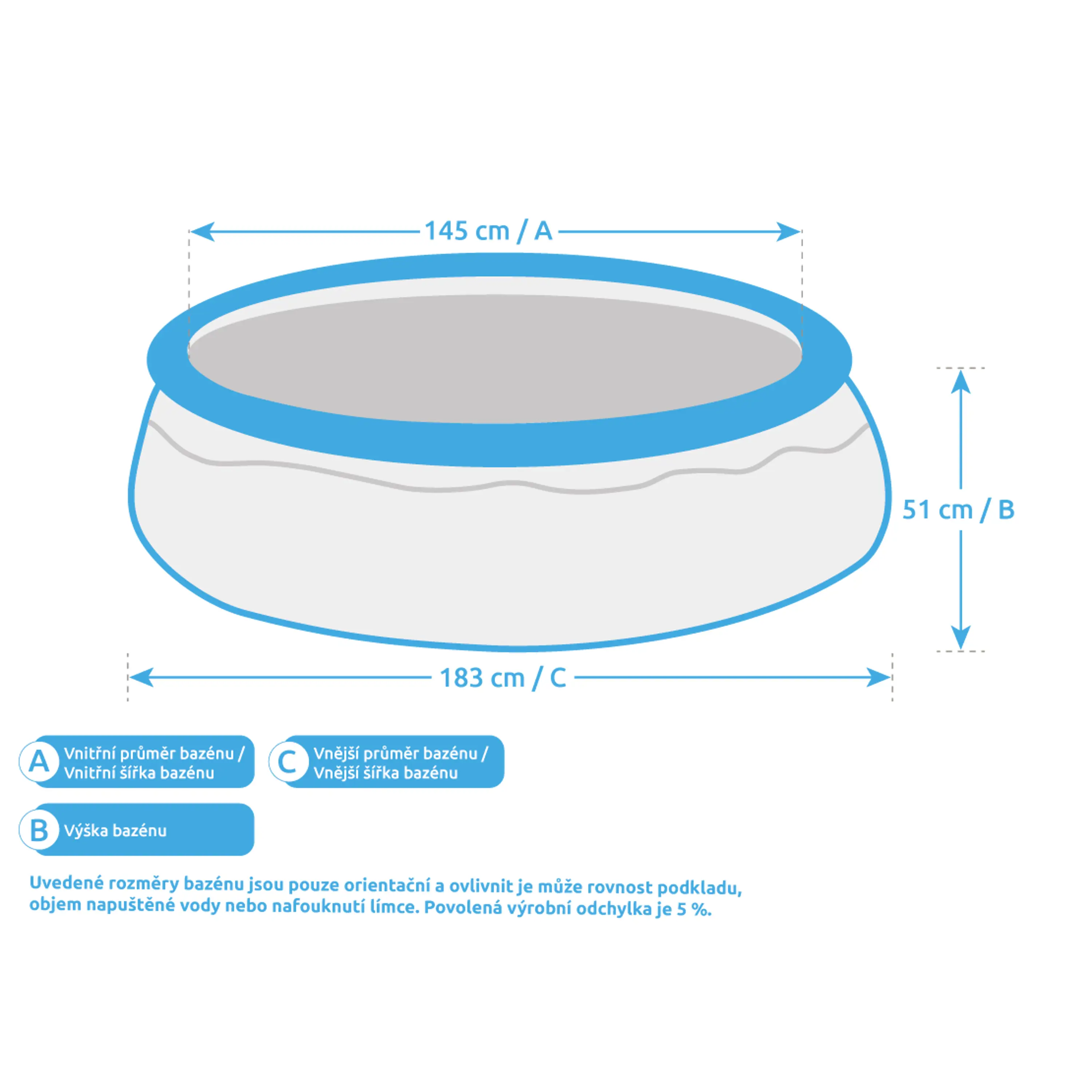 Další výhodou je snadná údržba i rychlé zprovoznění. Stačí jen připravit místo na bazén, rozvinout bazénovou podložku, bazén rozbalit, nafouknout horní límec a začít napouštět vodu. Stoupající voda sama bazén postaví. Od vybalení bazénu můžete do 10 minut napouštět vodu. Bazén je nutné po skončení bazénové sezony vyčistit, vypustit a uklidit na suché, nemrznoucí místo. Správnou údržbou prodloužíte životnost bazénu.