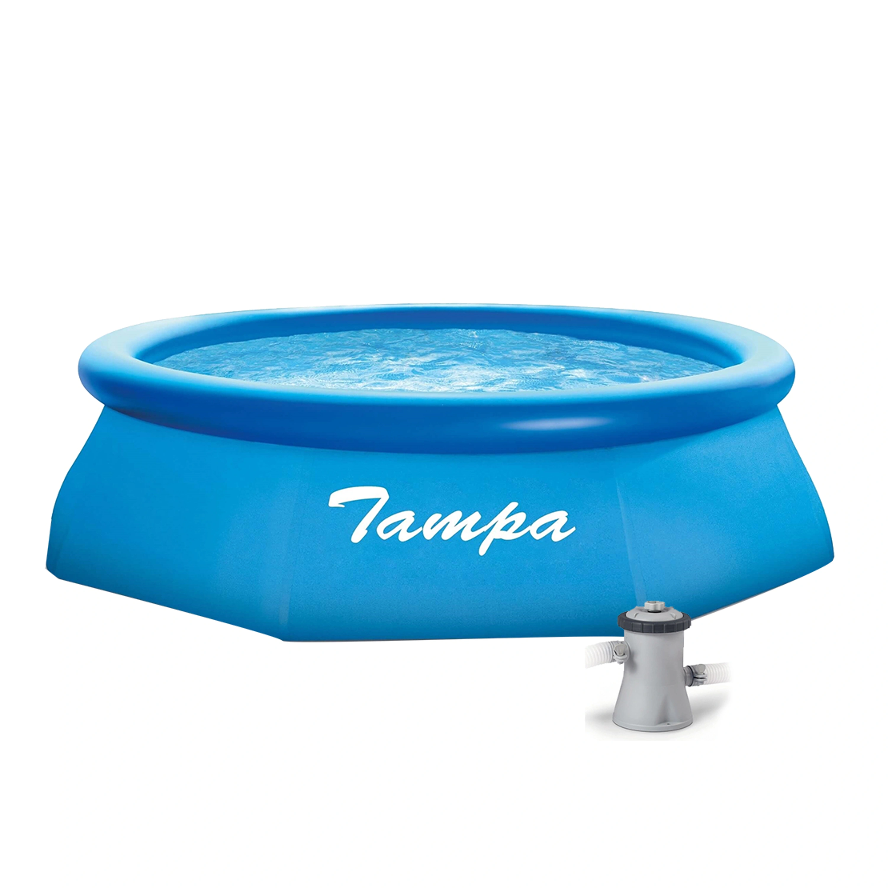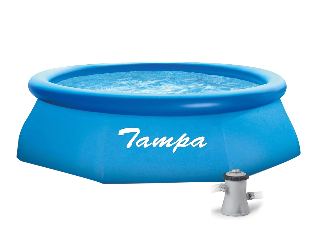 Bazén Tampa se řadí mezi nejprodávanější a nejoblíbenější bazény v České republice. Koupání ve vlastním bazénu si může dopřát opravdu každý. Předností bazénu Tampa je nízká cena, snadná údržba i rychlé zprovoznění. Stačí jen připravit místo na bazén, rozvinout bazénovou podložku, bazén rozbalit, nafouknout horní límec a začít napouštět vodu. Stoupající voda sama bazén postaví. Od vybalení bazénu můžete do 10 minut napouštět vodu. Bazén je nutné po skončení bazénové sezony vyčistit, vypustit a uklidit na suché, nemrznoucí místo. Správnou údržbou prodloužíte životnost bazénu. Doporučujeme bazén po koupání zakrývat krycí plachtou. Pro snadné nafouknutí doporučujeme zakoupit ruční či elektrickou pumpu.