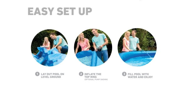 Při stavbě stačí nafouknout horní límec a stoupající voda bazén sama postaví. Stavební práce či jiné náročné úpravy zahrady nejsou zapotřebí.