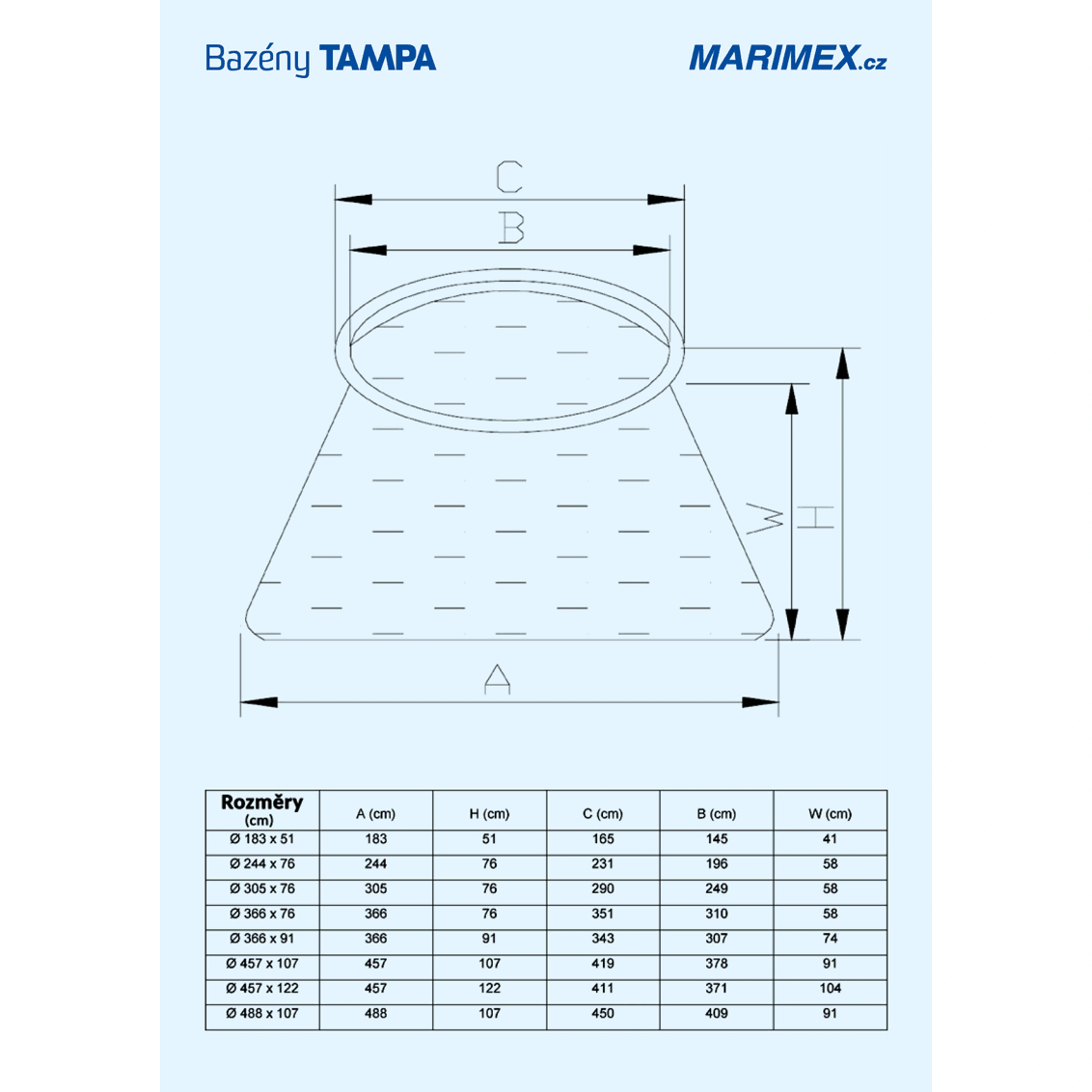 Bazén Tampa právem patří k nejoblíbenějším na českém trhu. Jednoduchá a rychlá montáž, poho-dlná skladnost, cenová dostupnost a bezpečnost jsou hlavními výhodami tohoto celoplastového bazénu. Při výrobě bylo použito odolného třívrstvého PVC.