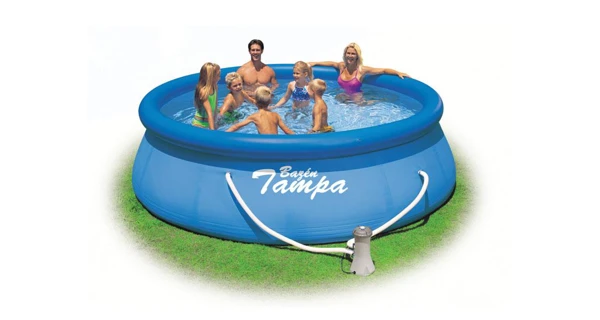 Bazén Tampa se řadí mezi neprodávanější a nejoblíbenější bazény v České republice. Koupání ve vlastním bazénu si může dopřát opravdu každý. Předností bazénu Tampa je nízká cena, snadná údržba i rychlé zprovoznění. Stačí jen připravit místo na bazén, rozvinout bazénovou podložku, bazén rozbalit, nafouknout horní límec a začít napouštět vodu. Stoupající voda sama bazén postaví. Od vybalení bazénu můžete do 10 minut napouštět vodu. Bazén je nutné po skončení bazénové sezony vyčistit, vypustit a uklidit na suché, nemrznoucí místo. Správnou údržbou prodloužíte životnost bazénu. Doporučujeme bazén po koupání zakrývat krycí plachtou. Pro snadné nafouknutí doporučujeme zakoupit ruční či elektrickou pumpu.