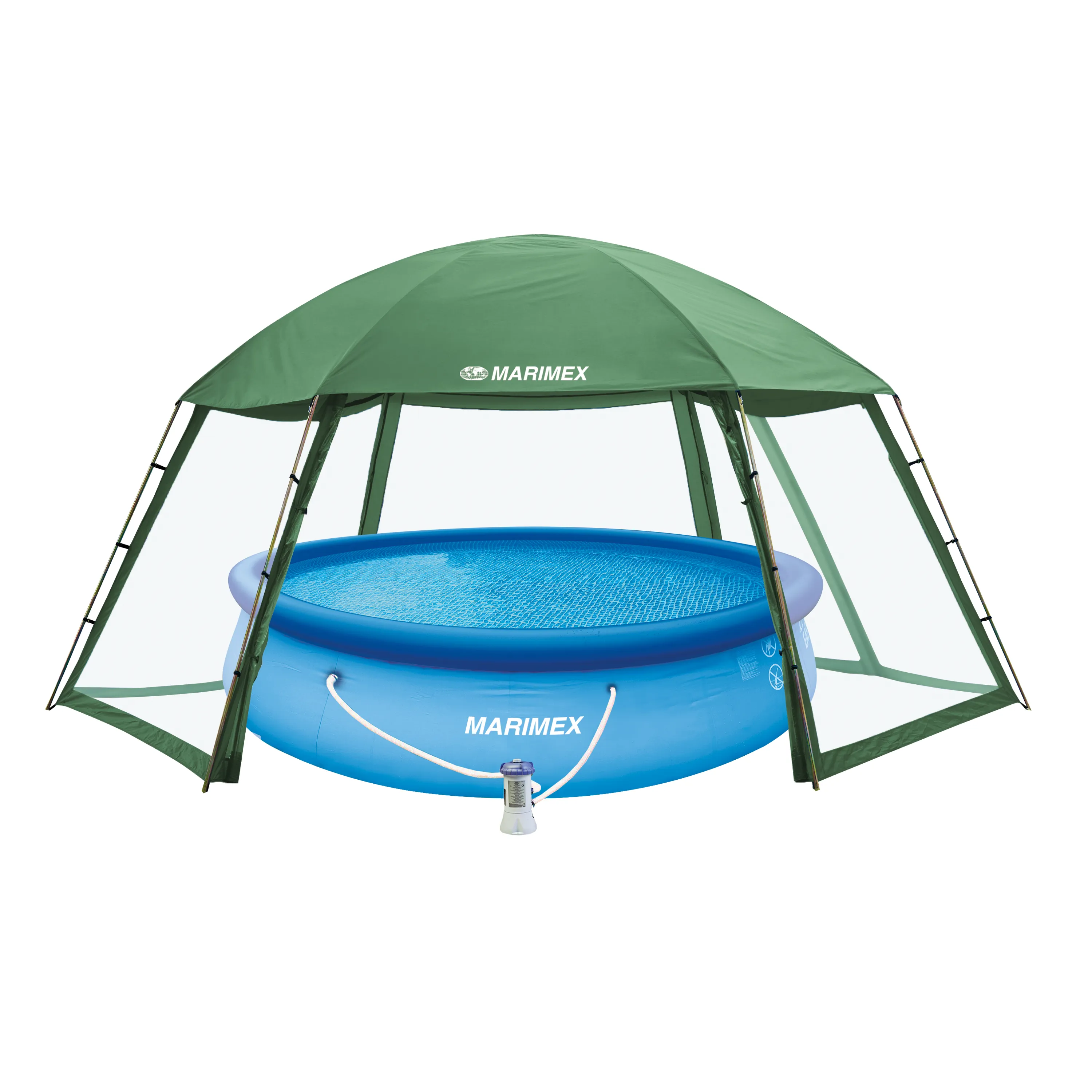 Bazén stojí na zahradě pouze v období koupací sezóny. Jakmile přijde zima, uvolní prostor na zahradě jiným aktivitám. Díky tomu může být každé léto snadno postaven jinde.