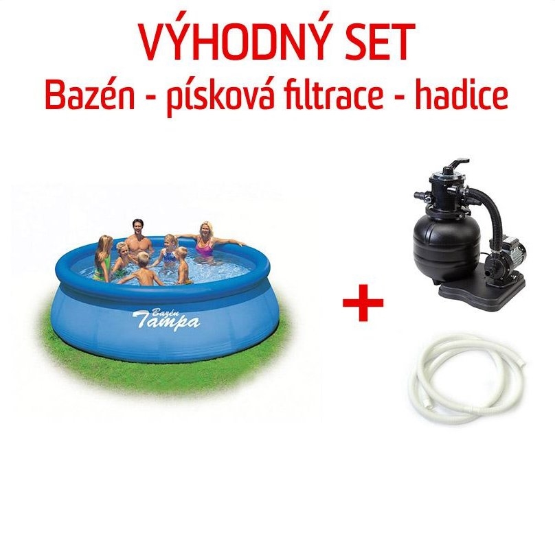 Bazén Tampa se řadí mezi neprodávanější a nejoblíbenější bazény v České republice. Koupání ve vlastním bazénu si může dopřát opravdu každý. Předností bazénu Tampa je nízká cena, snadná údržba i rychlé zprovoznění. Stačí jen připravit místo na bazén, rozvinout bazénovou podložku, bazén rozbalit, nafouknout horní límec a začít napouštět vodu. Stoupající voda sama bazén postaví. Od vybalení bazénu můžete do 10 minut napouštět vodu. Bazén je nutné po skončení bazénové sezony vyčistit, vypustit a uklidit na suché, nemrznoucí místo. Správnou údržbou prodloužíte životnost bazénu. Pro snadné nafouknutí doporučujeme zakoupit ruční či elektrickou pumpu.