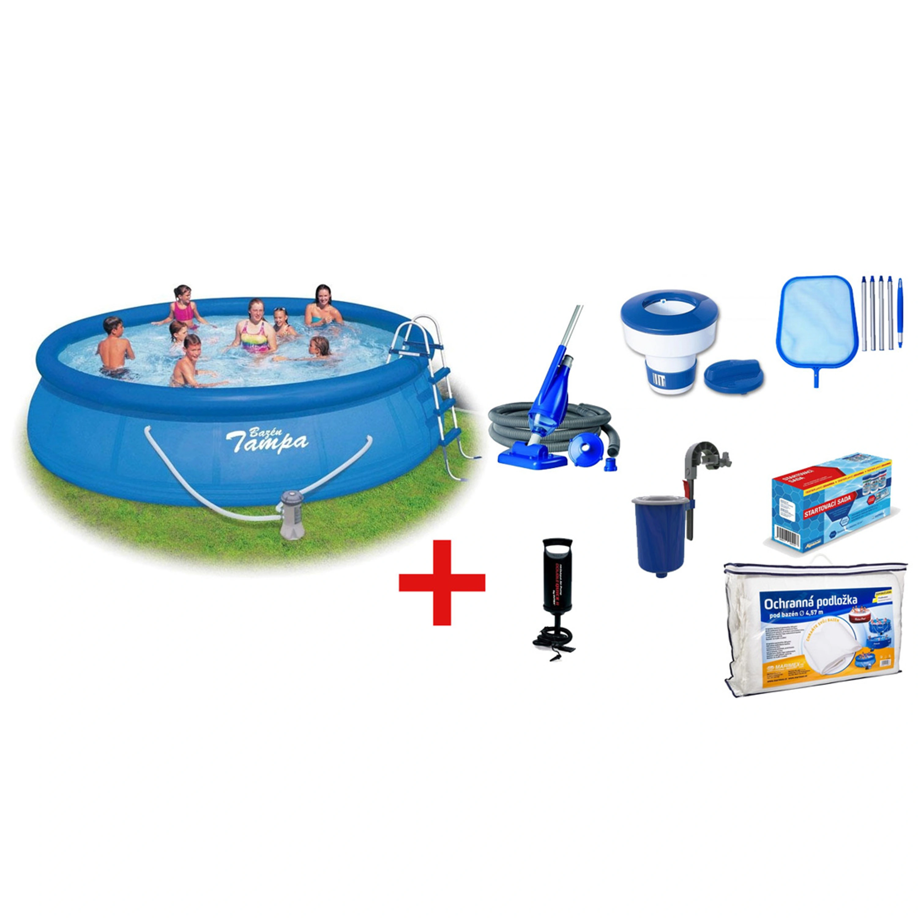 Bazén Tampa se řadí mezi neprodávanější a nejoblíbenější bazény v České republice. Koupání ve vlastním bazénu si může dopřát opravdu každý. Předností bazénu Tampa je nízká cena, snadná údržba i rychlé zprovoznění. Stačí jen připravit místo na bazén, rozvinout bazénovou podložku, bazén rozbalit, nafouknout horní límec a začít napouštět vodu. Stoupající voda sama bazén postaví. Od vybalení bazénu můžete do 10 minut napouštět vodu. Bazén je nutné po skončení bazénové sezony vyčistit, vypustit a uklidit na suché, nemrznoucí místo. Správnou údržbou prodloužíte životnost bazénu. Doporučujeme bazén po koupání zakrývat krycí plachtou. Pro snadné nafouknutí doporučujeme zakoupit ruční či elektrickou pumpu.