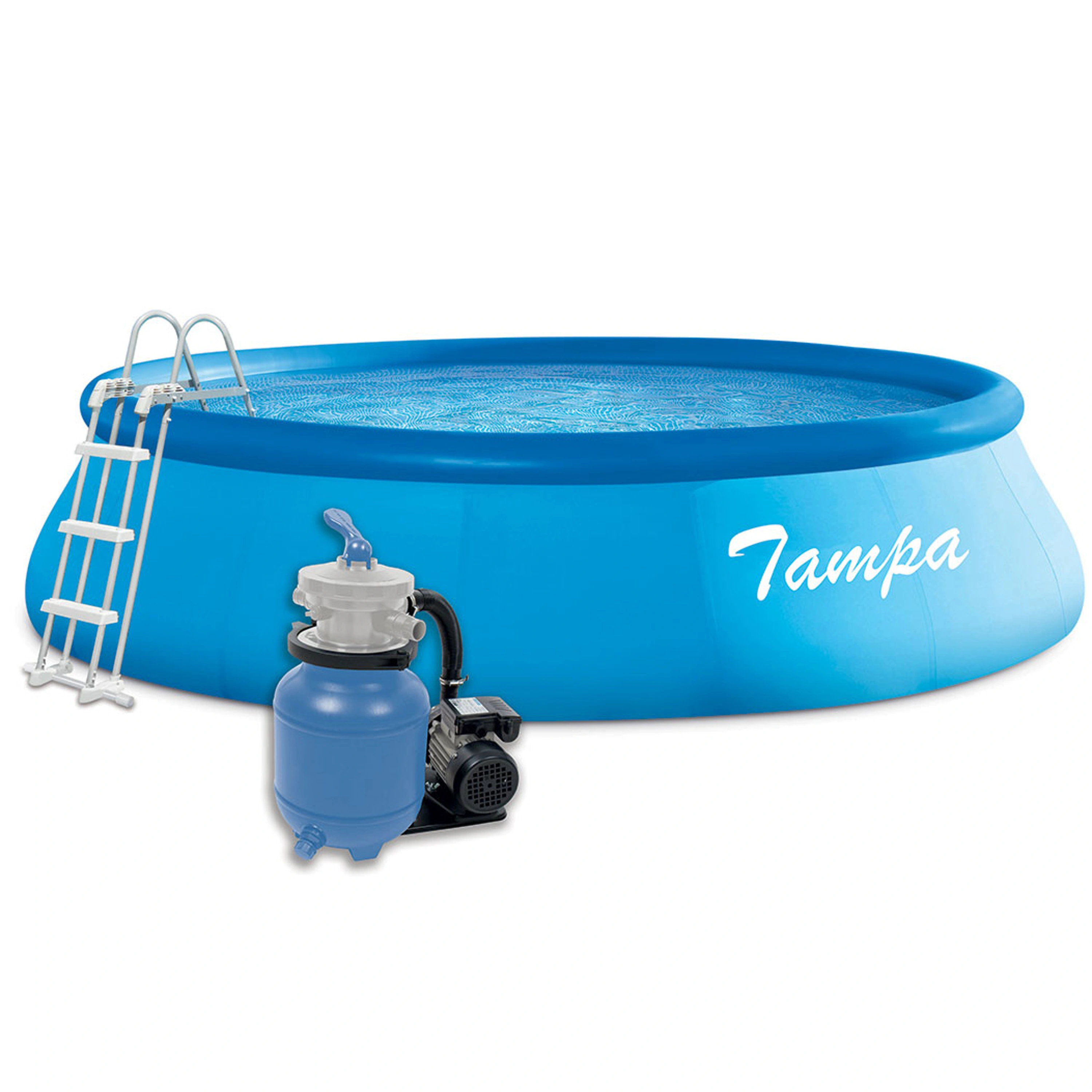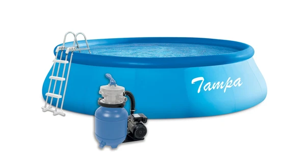 Bazén Tampa se řadí mezi neprodávanější a nejoblíbenější bazény v České republice. Koupání ve vlastním bazénu si může dopřát opravdu každý. Předností bazénu Tampa je nízká cena, snadná údržba i rychlé zprovoznění. Stačí jen připravit místo na bazén, rozvinout bazénovou podložku, bazén rozbalit, nafouknout horní límec a začít napouštět vodu. Stoupající voda sama bazén postaví. Od vybalení bazénu můžete do 10 minut napouštět vodu. Bazén je nutné po skončení bazénové sezony vyčistit, vypustit a uklidit na suché, nemrznoucí místo. Správnou údržbou prodloužíte životnost bazénu. Doporučujeme bazén po koupání zakrývat krycí plachtou. Pro snadné nafouknutí doporučujeme zakoupit ruční či elektrickou pumpu.