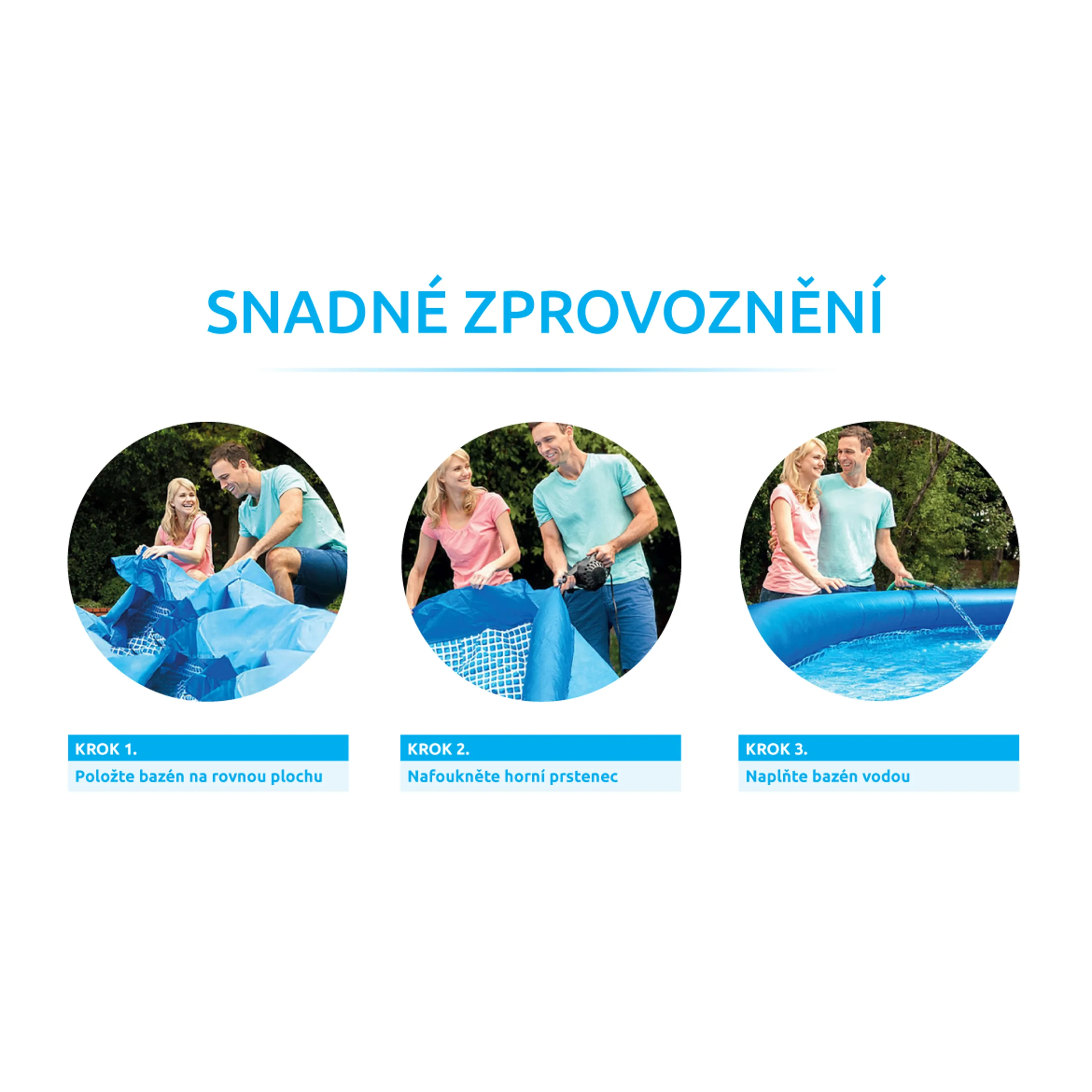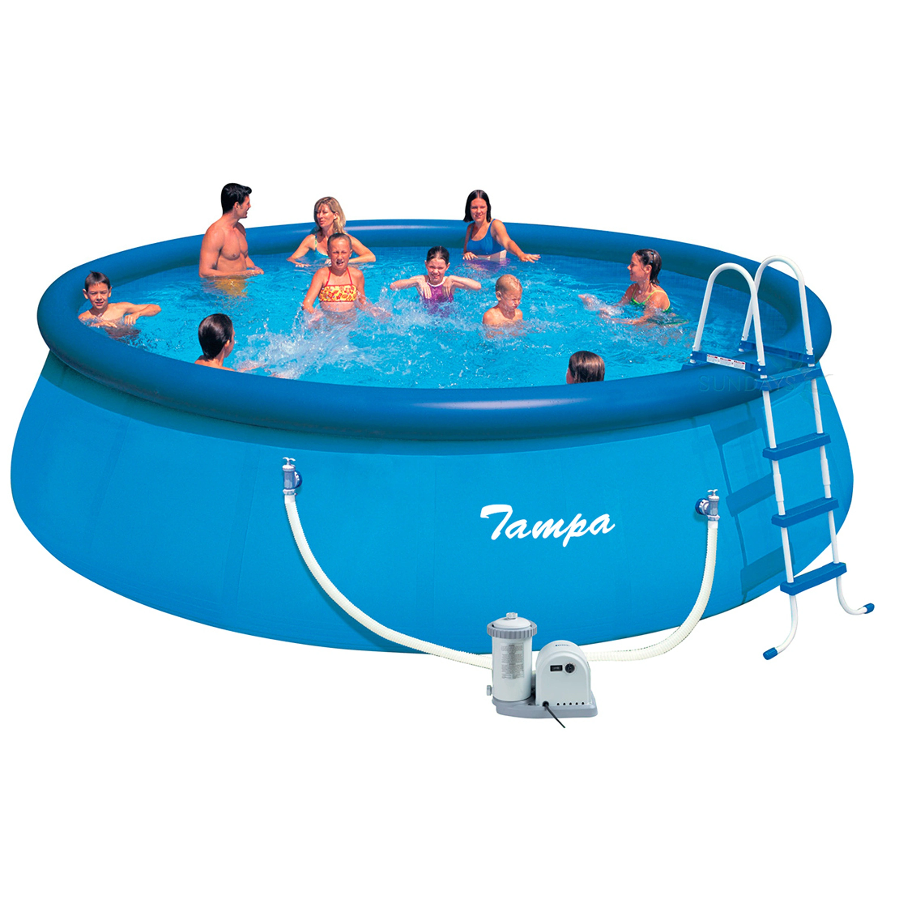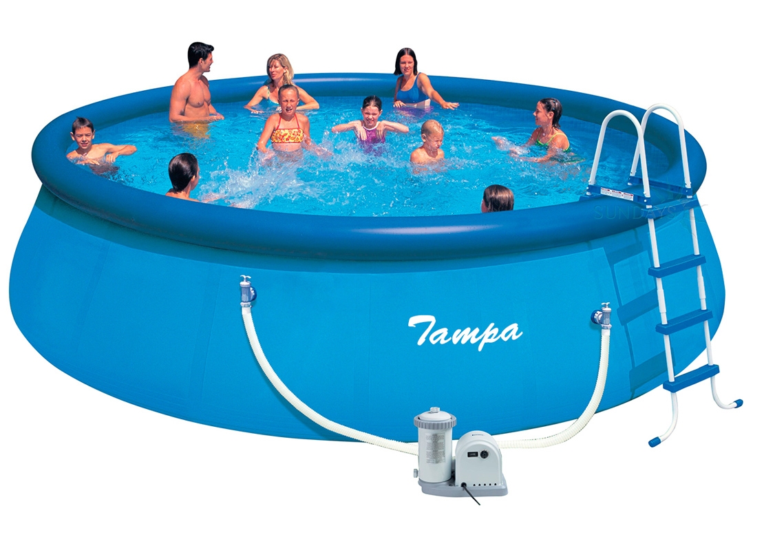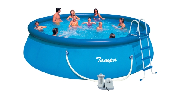 Bazén Tampa se řadí mezi neprodávanější a nejoblíbenější bazény v České republice. Koupání ve vlastním bazénu si může dopřát opravdu každý. Předností bazénu Tampa je nízká cena, snadná údržba i rychlé zprovoznění. Stačí jen připravit místo na bazén, rozvinout bazénovou podložku, bazén rozbalit, nafouknout horní límec a začít napouštět vodu. Stoupající voda sama bazén postaví. Od vybalení bazénu můžete do 10 minut napouštět vodu. Bazén je nutné po skončení bazénové sezony vyčistit, vypustit a uklidit na suché, nemrznoucí místo. Správnou údržbou prodloužíte životnost bazénu. Doporučujeme bazén po koupání zakrývat krycí plachtou. Pro snadné nafouknutí doporučujeme zakoupit ruční či elektrickou pumpu.