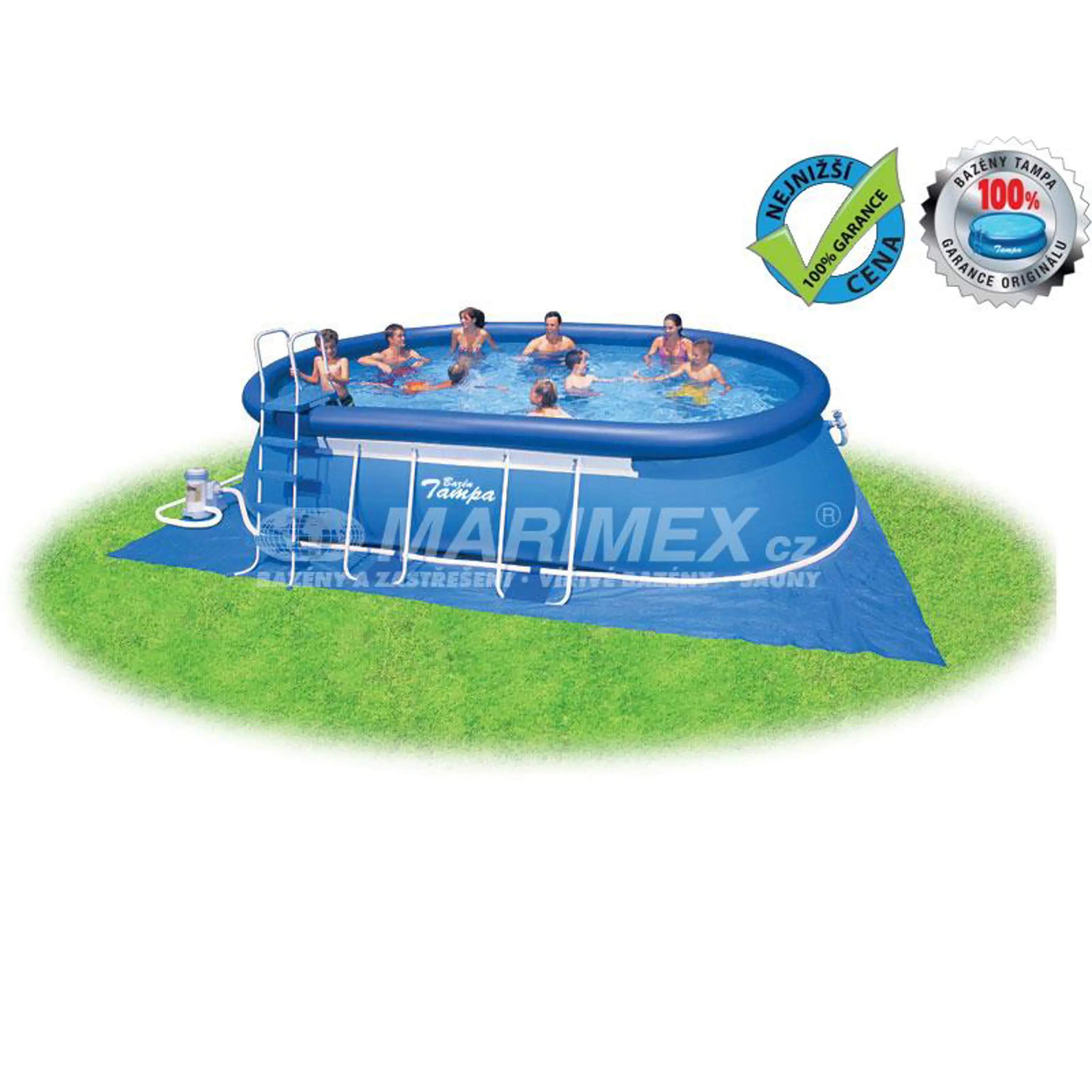 Bazén Tampa se řadí mezi nejprodávanější a nejoblíbenější bazény v České republice. Koupání ve vlastním bazénu si může dopřát opravdu každý. Předností bazénu Tampa je nízká cena, snadná údržba i rychlé zprovoznění. Stačí jen připravit místo na bazén, rozvinout bazénovou podložku, bazén rozbalit, nafouknout horní límec a začít napouštět vodu. Stoupající voda sama bazén postaví. Od vybalení bazénu můžete do 10 minut napouštět vodu. Bazén je nutné po skončení bazénové sezony vyčistit, vypustit a uklidit na suché, nemrznoucí místo. Správnou údržbou prodloužíte životnost bazénu. Pro snadné nafouknutí doporučujeme zakoupit ruční či elektrickou pumpu.