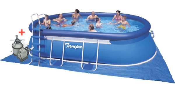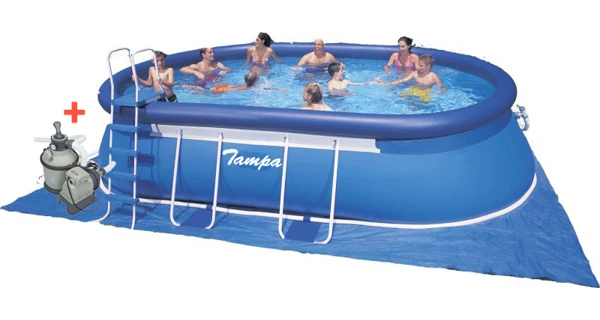 Bazén Tampa se řadí mezi neprodávanější a nejoblíbenější bazény v České republice. Koupání ve vlastním bazénu si může dopřát opravdu každý. Předností bazénu Tampa je nízká cena, snadná údržba i rychlé zprovoznění. Stačí jen připravit místo na bazén, rozvinout bazénovou podložku, bazén rozbalit, nafouknout horní límec a začít napouštět vodu. Stoupající voda sama bazén postaví. Od vybalení bazénu můžete do 10 minut napouštět vodu. Bazén je nutné po skončení bazénové sezony vyčistit, vypustit a uklidit na suché, nemrznoucí místo. Správnou údržbou prodloužíte životnost bazénu. Pro snadné nafouknutí doporučujeme zakoupit ruční či elektrickou pumpu.
