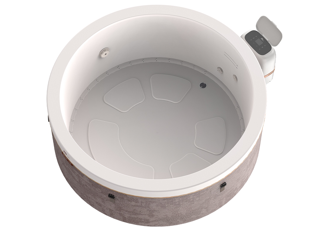 Silné panely (10 cm) z EPE pěny fungují jako robustní tepelná bariéra a chrání vířivku před okolním studeným vzduchem. Design vířivky je inspirovaný textilem, který evokuje pohodlí a klid.