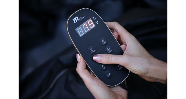 - PTC ("Positive Thermal Coeficient") keramický ohřev vody - vyhřeje vířivku až na 42°C / 104°F(US)