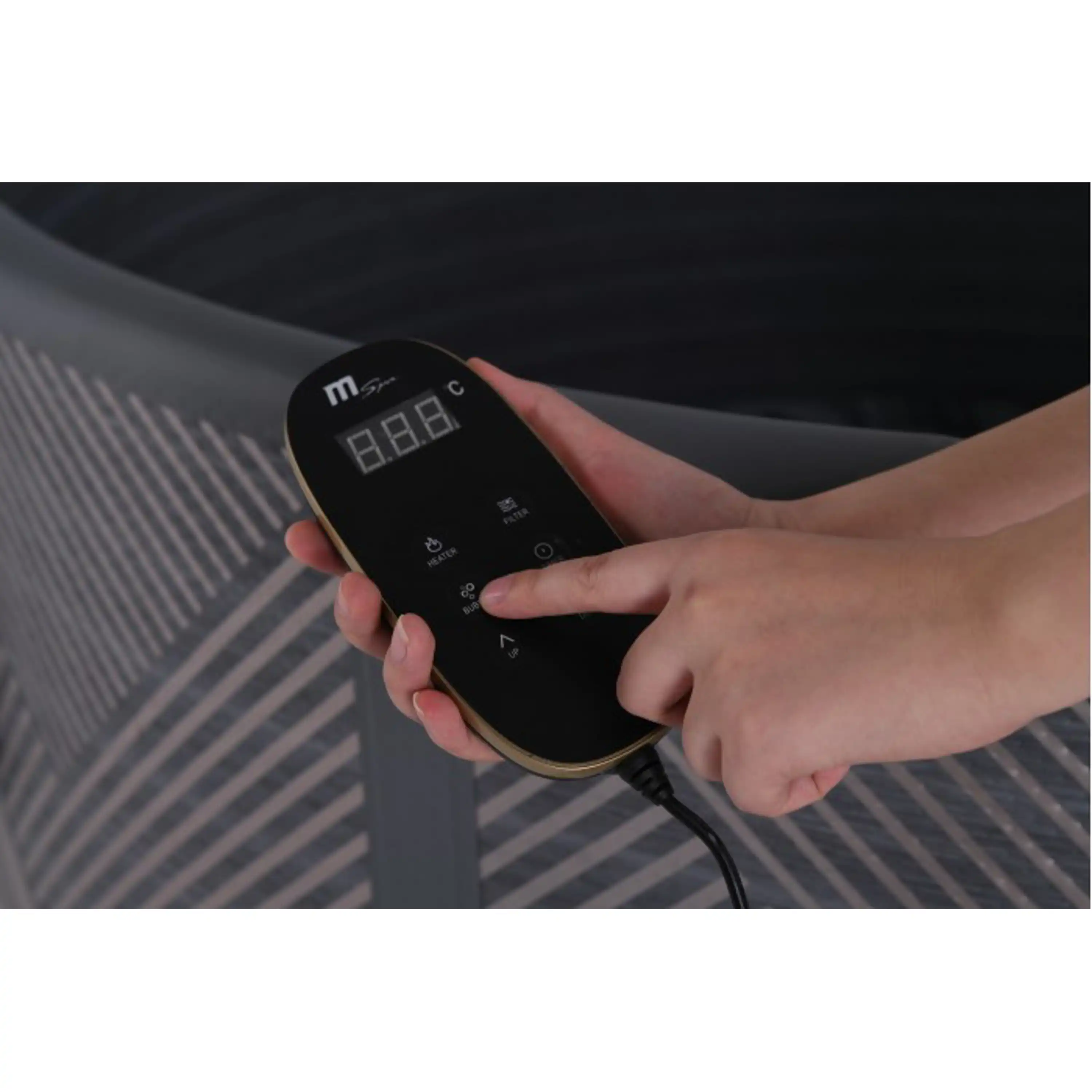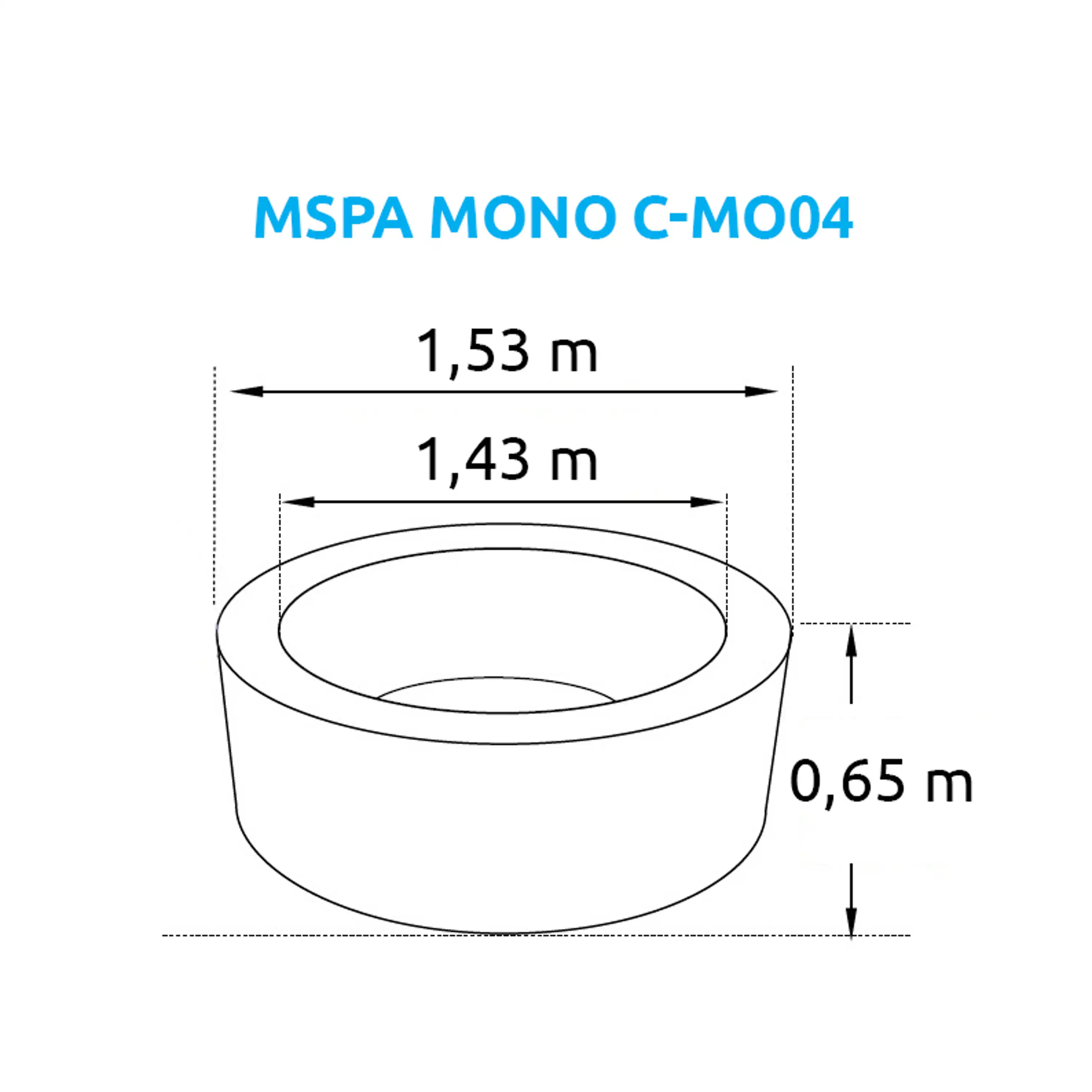 Novinkou řady Concept MSpa je mobilní kruhová vířivka Mono C-MO04. Je navržena pro 4 osoby. Nabízí moderní design – vnější vrstva je vyrobena z Premium PVC kůže s moderním vzorem s proužky ve zlatavém odstínu se zlatavou skořepinou. Jedná se o velice pevnou konstrukci, která využívá technologii známou například z paddle boardů. Stěny vířivky jsou mnohem tenčí než u nafukovacích vířivek jiné řady a přesto jsou velmi pevné! Můžete se posadit na hranu vířivky, aniž by se deformovala.