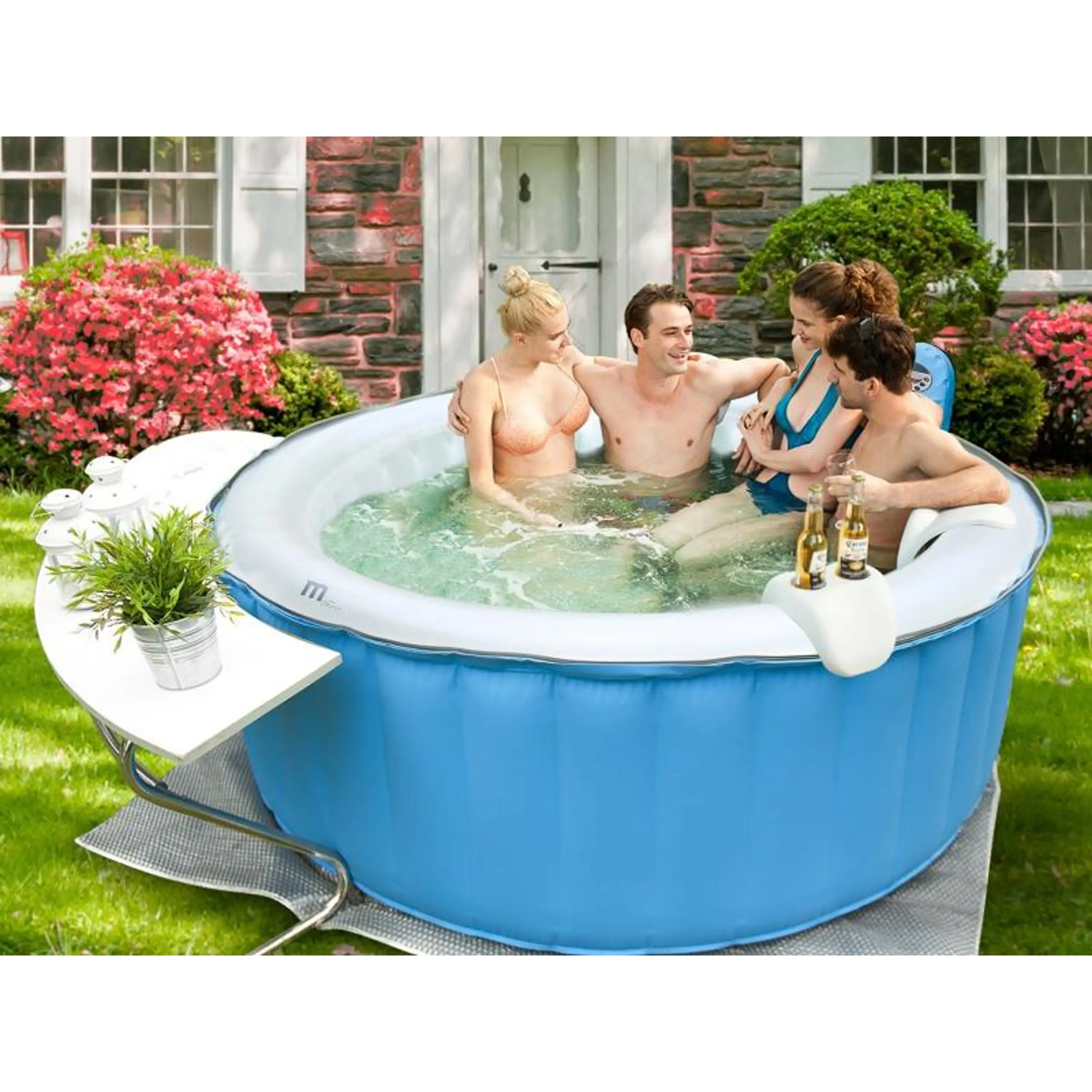 Mobilní nafukovací vířivka MSpa pro 4 dospělé osoby. Poskytne relaxaci a vířivkové centrum přímo u vás doma nebo na zahradě. Tento model nafukovací vířivky je vybaven vzorem tropické modré barvy a vnitřek této je vybaven perlově zbarveným interiérem s osazením 115ti vzruchovými tryskami.