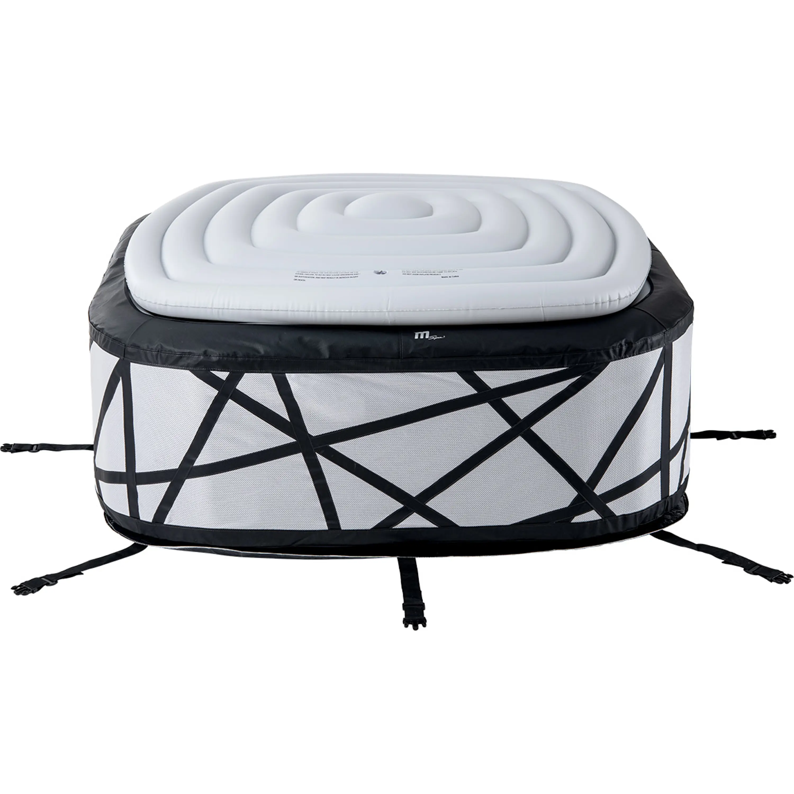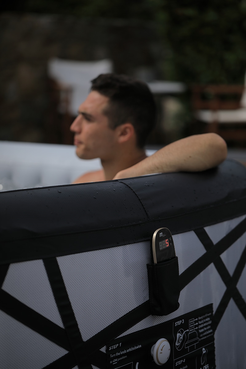 Originální MSpa nafukovací vířivka SOHO P-SH069 je prostorově navržena až pro 4 dospělé osoby + 2 děti. Její vnější vrstva je vyrobena z Premium PVC kůže ve velice vkusném černobílém provedení. Tato rodinná čtvercová nafukovací vířivka je mimořádně prostorná a umožní vám relaxovat a zcela se ponořit do luxusu bublinkové masáže. Funkce Variable Bubble vám nabízí možnost vlastního nastavení intenzity perličkové terapie. Kombinace bílého koženého potahu s černým vzorem dává vířivce SOHO P-SH069 odvážný a moderní vzhled, který oživí vaši zahradu, terasu nebo interiér domu.