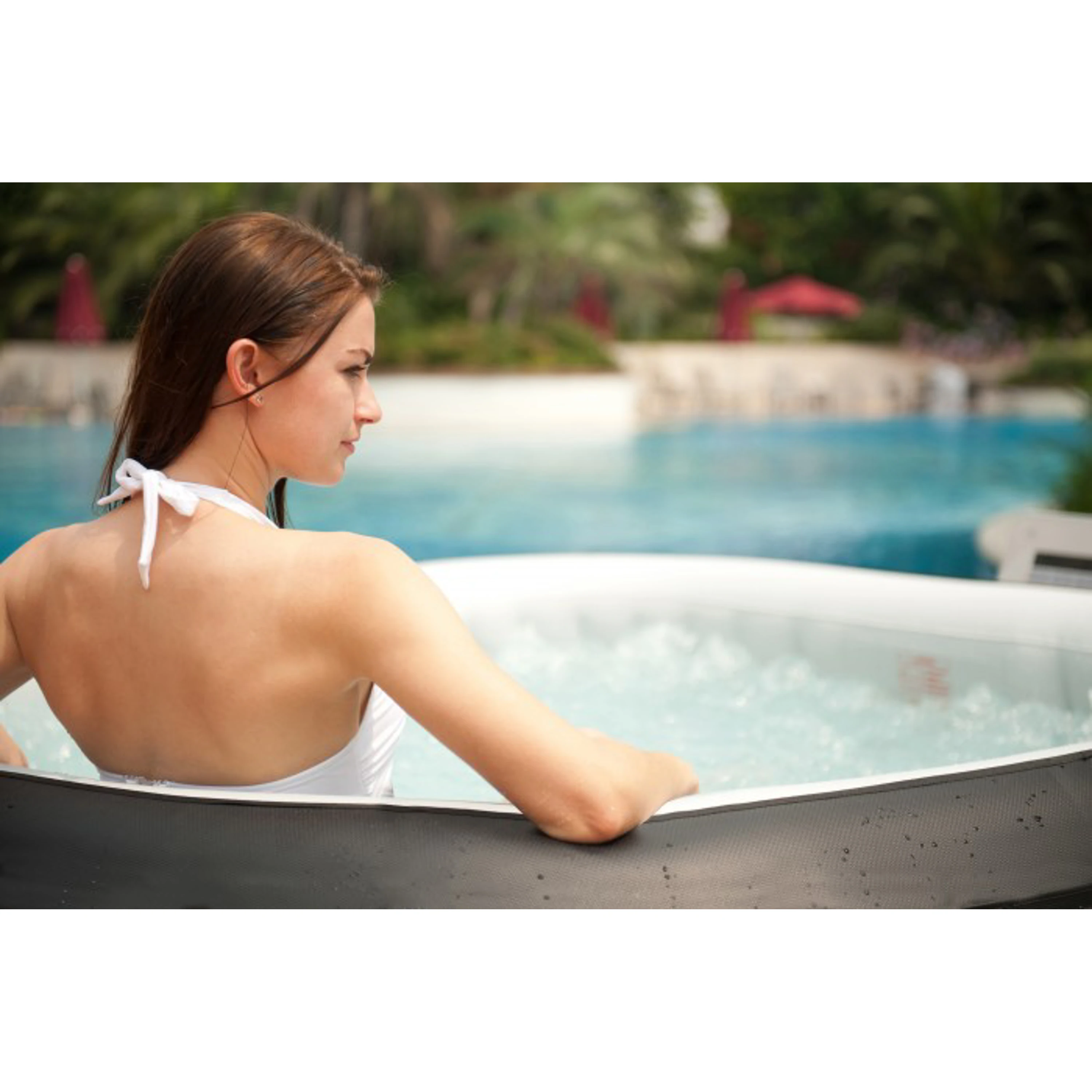 Nafukovací vířivku lze používat jak v interiéru, tak i v exteriéru. V létě ji můžete umístit na zahradu, v zimě kamkoliv do domácnosti.