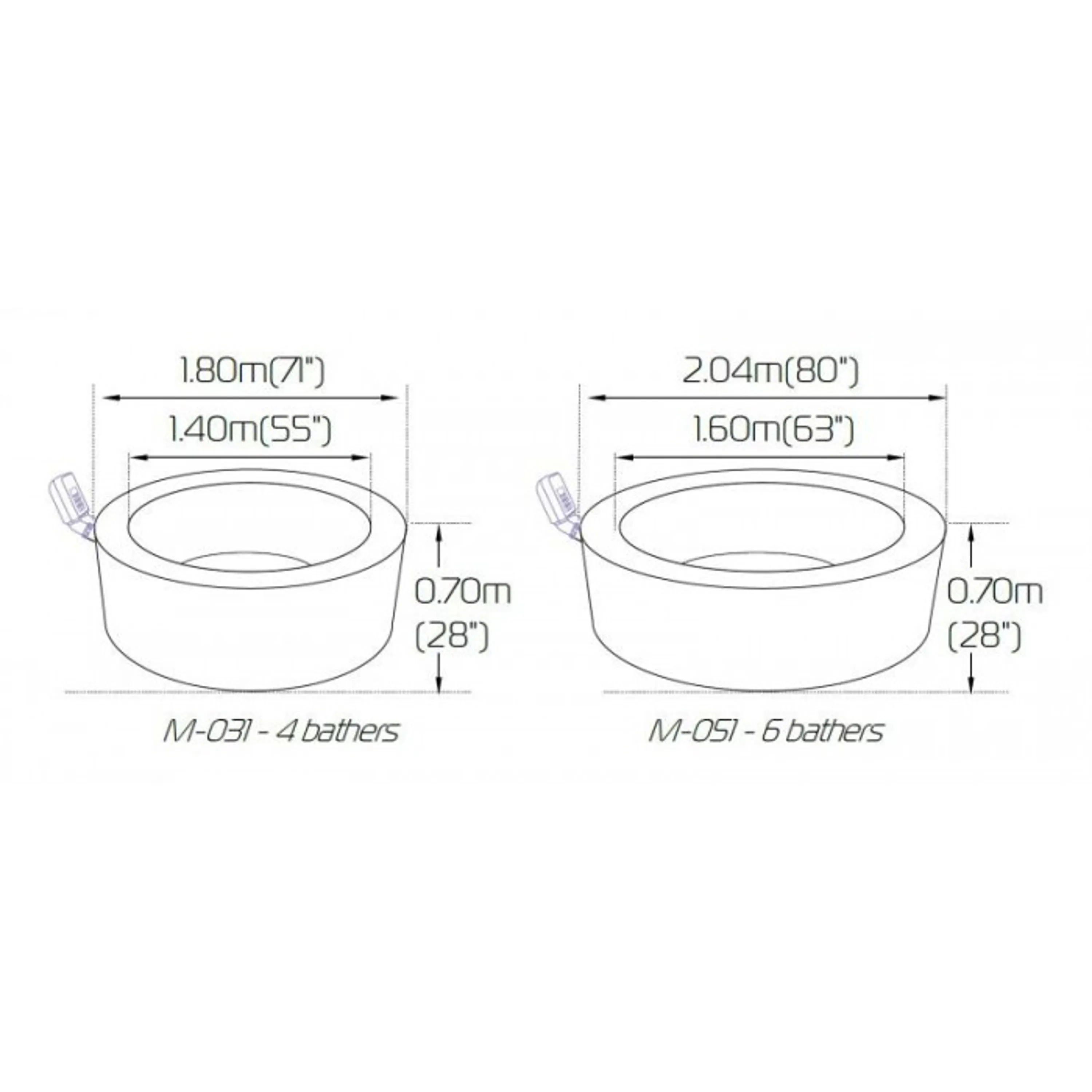 Mobilní vířivá vana MSpa M-051 nastavila standard mobilních vířivek opravdu vysoko. Těžko naleznete lepší volbu v oboru nafukovacích vířivek až pro 6 osob. Vířivka MSpa M-051 poskytuje osobní wellness a spa centrum přímo u vás doma nebo kdekoli ji budete využívat. Relaxaci si můžete užívat nejen s vaší rodinou, ale i s přáteli, jelikož je tato vířivka určena až pro 6 osob. Můžete si vychutnat masáž 135 vzduchovými tryskami, jež blahodárně působí na omlazení těla a proti každodennímu stresu, což skutečně oceníte.