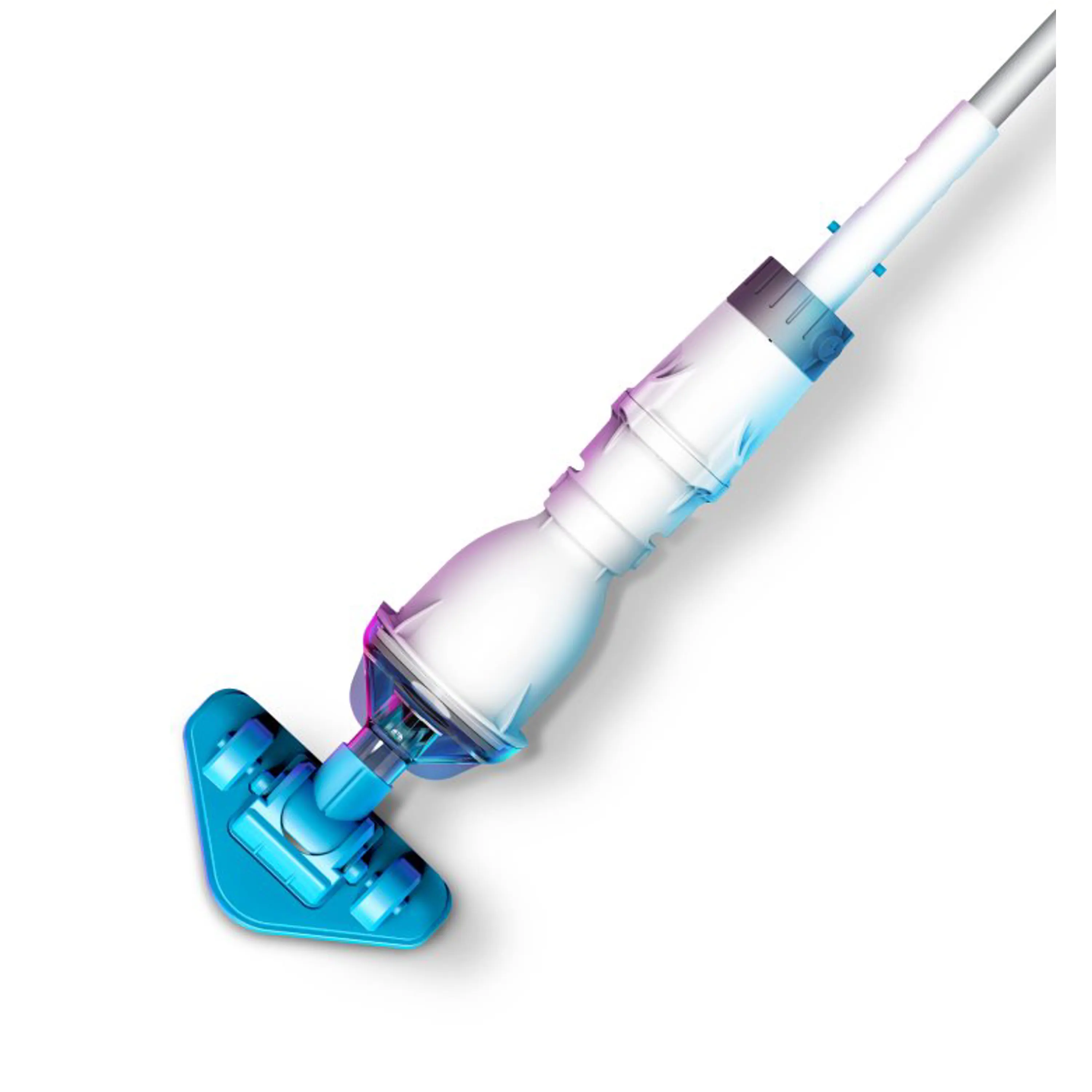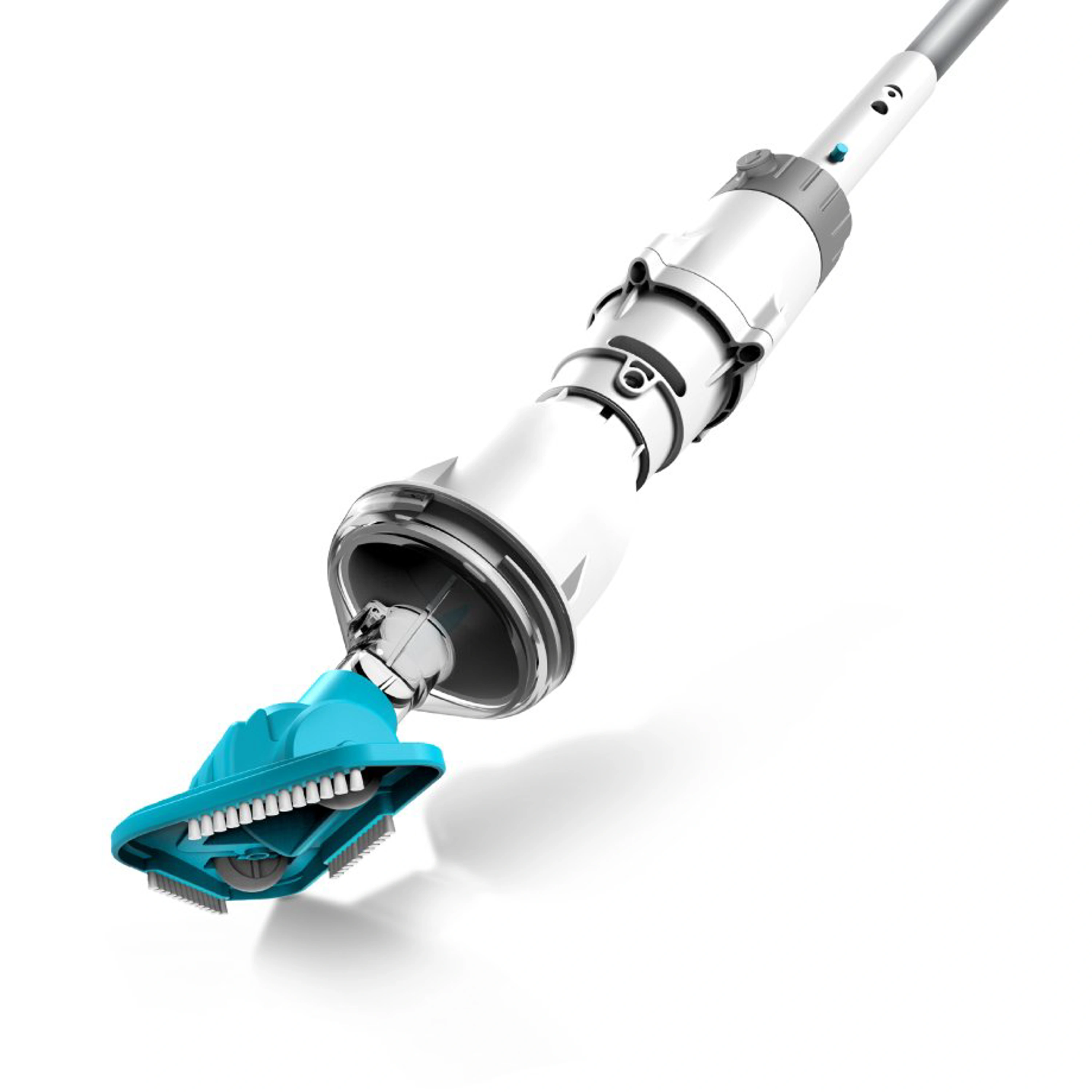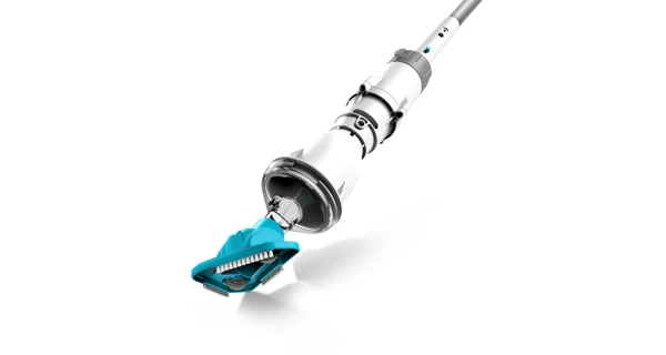 Ruční akumulátorový vysavač Telsa 02 pro bazény a vířivky do průměru až 3,7 m. Motor vysavače se aktivuje při ponoření do vody.