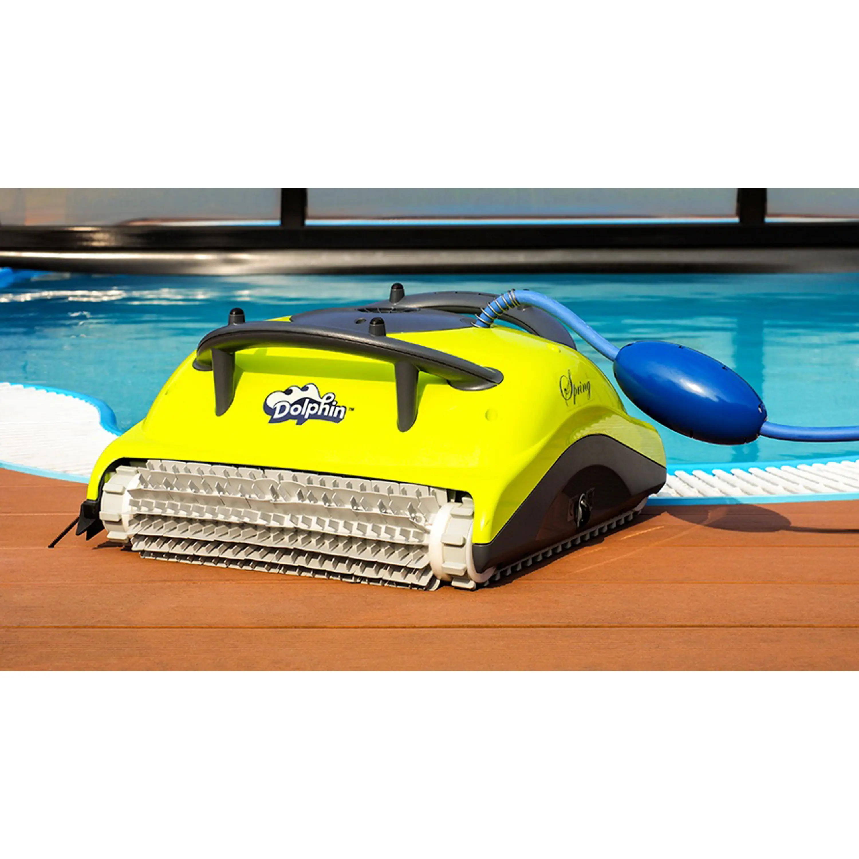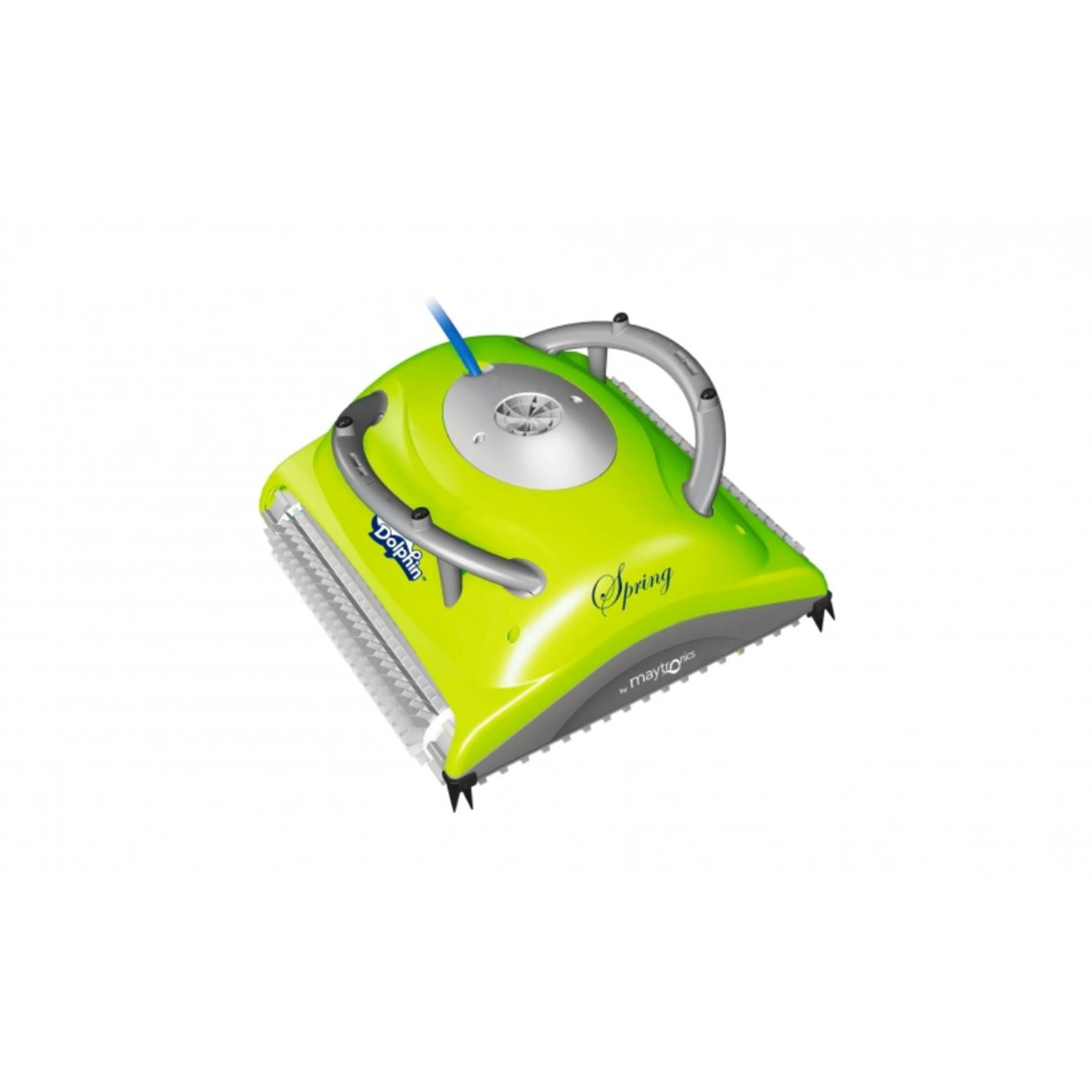 Automatický vysavač Dolphin SPRING automaticky setře, vyčistí a přefiltruje nečistoty ve vašem bazénu. Filtr o ploše 0,5 m2 přefiltruje 17 m3/h vody. S tímto vysavačem odstraníte nečistoty ze dna bazénu, což se projeví na kvalitě vody a na nižší spotřebě chemikálií. Zařízení je absolutně nenáročné na obsluhu a údržbu. Po vložení do bazénu a následném zapnutí se o nic nemusíte starat, neboť se po ukončení 3 hodinového čisticího cyklu sám vypne.