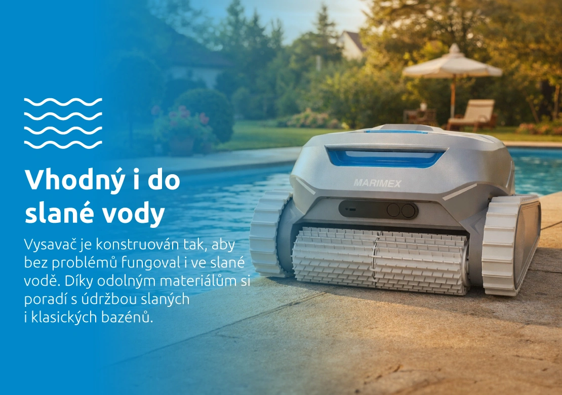 Upozornění: Bazénový robotický vysavač Marimex RobotVac Delaware je konstruovaný na použití ve slané vodě. Maximální koncentrace soli je 5000 ppm.