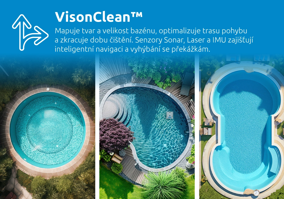 Vysavač je vybaven sensory Sonar, Laser a IMU. Více o fungování senzorů se dozvíte v článku „Jak fungují senzory v bazénových vysavačích“.