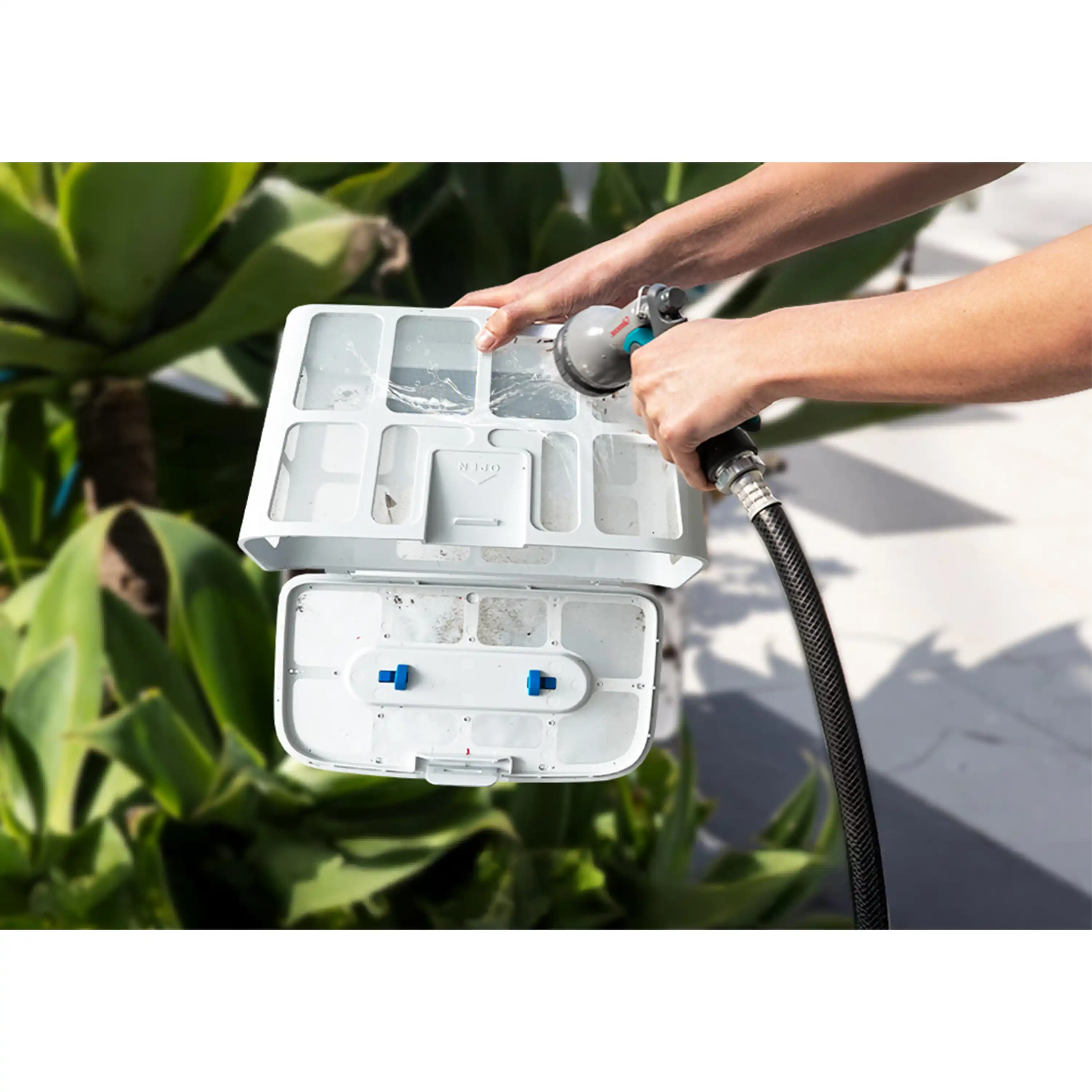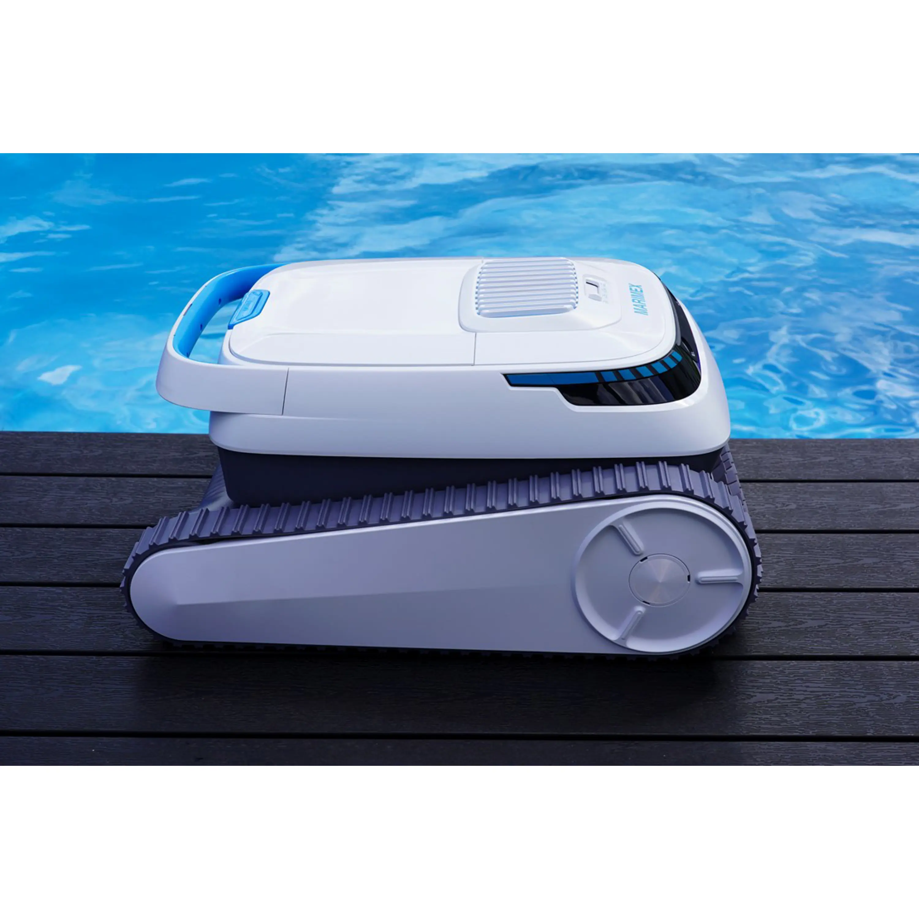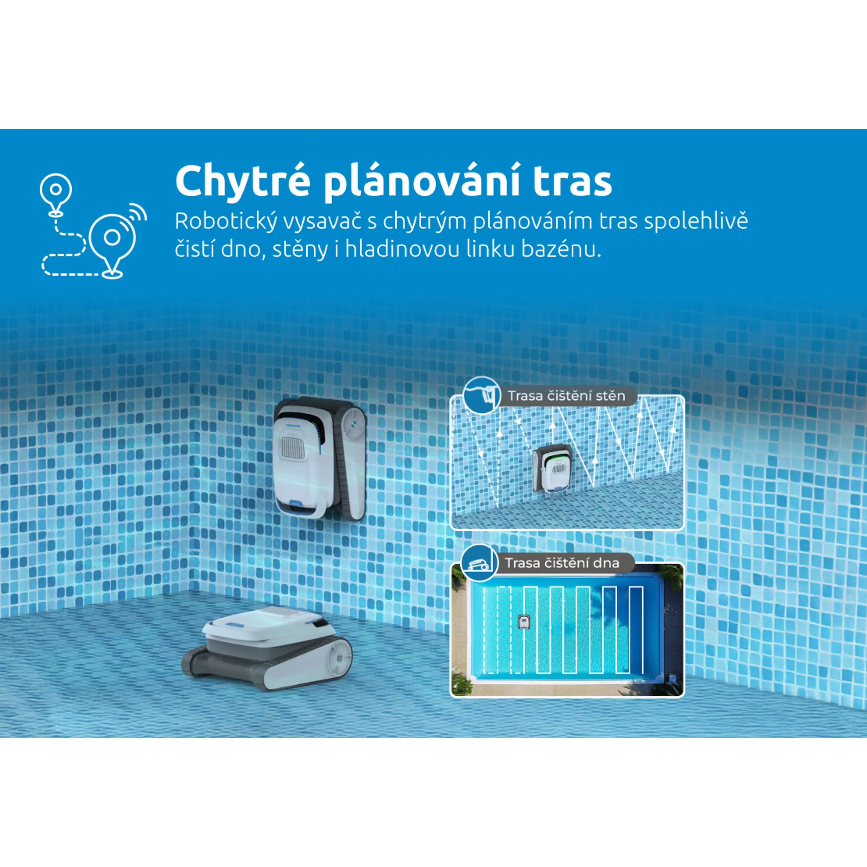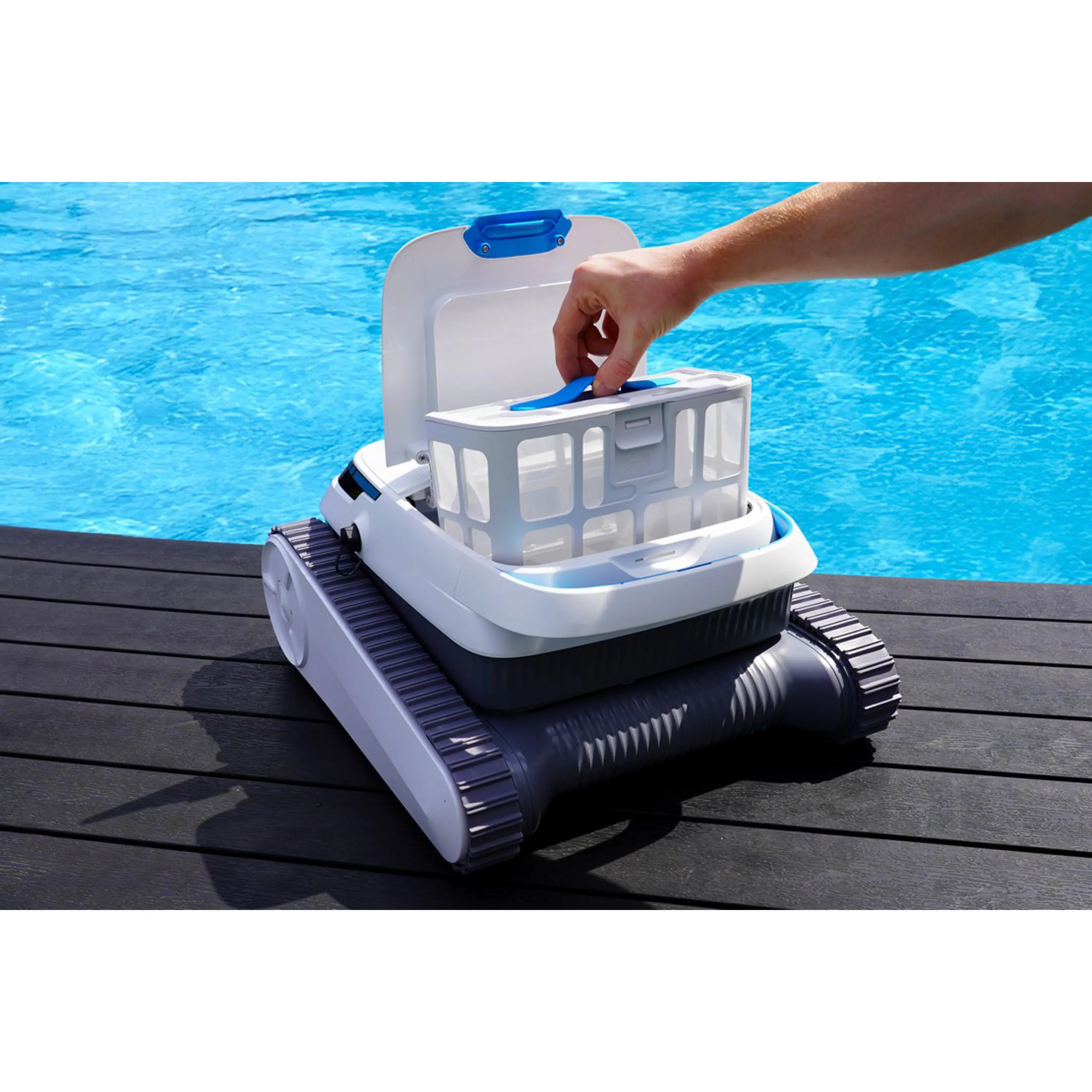 Bezdrátové provedení, kompaktní design a automatické parkování u stěny bazénu po dokončení čištění, zvyšují komfort uživatele a usnadňují manipulaci s vysavačem. Krytí IP68 poskytuje vysokou odolnost vůči vodě. Vysavač je vhodný pro bazény do hloubky 2,5 metru a lze jej používat v teplotním rozmezí vody od 5 °C do 35 °C, což jej činí univerzálním pomocníkem pro každý bazén. Je ideálním řešením pro ty, kteří hledají výkonný, spolehlivý a snadno ovladatelný vysavač pro svůj bazén.