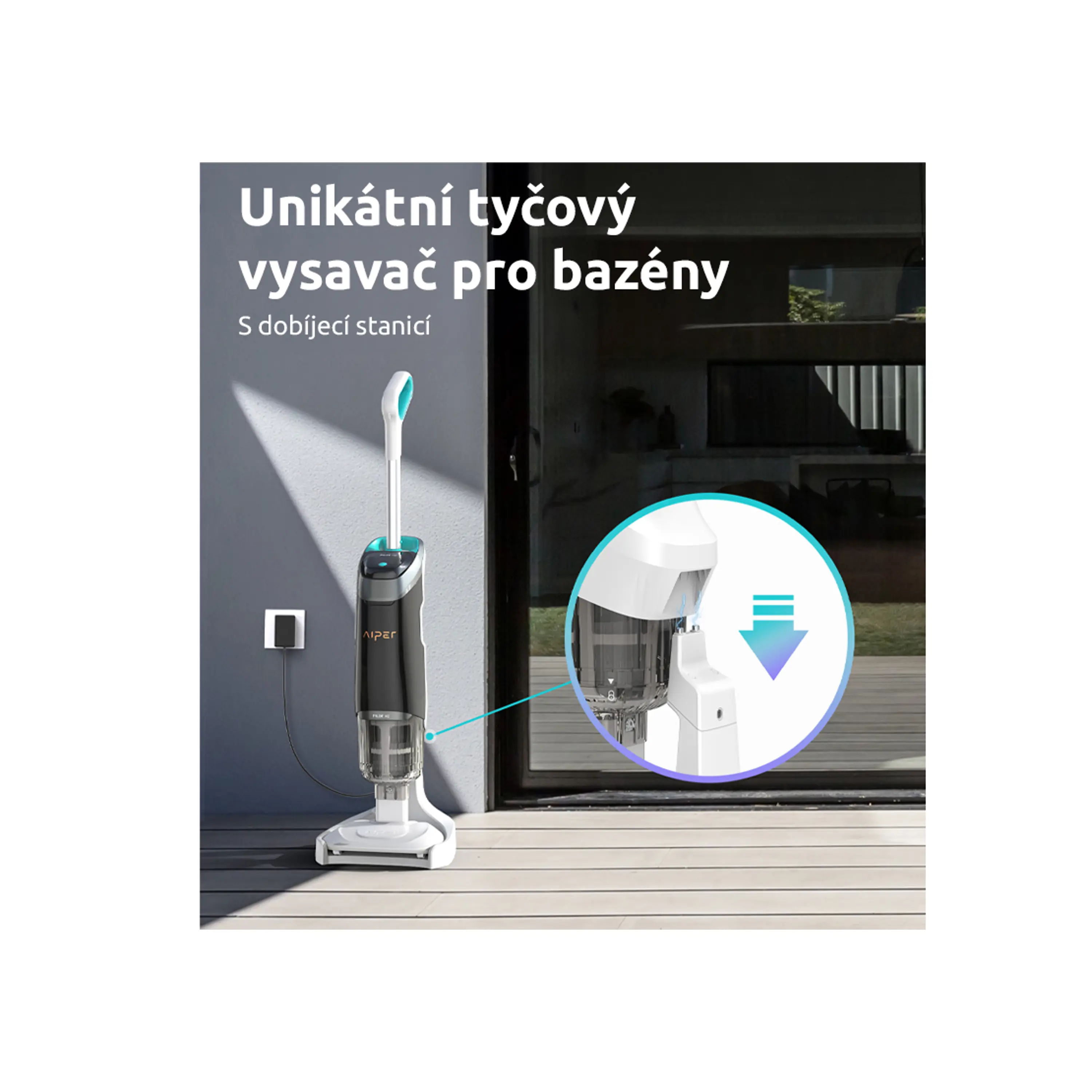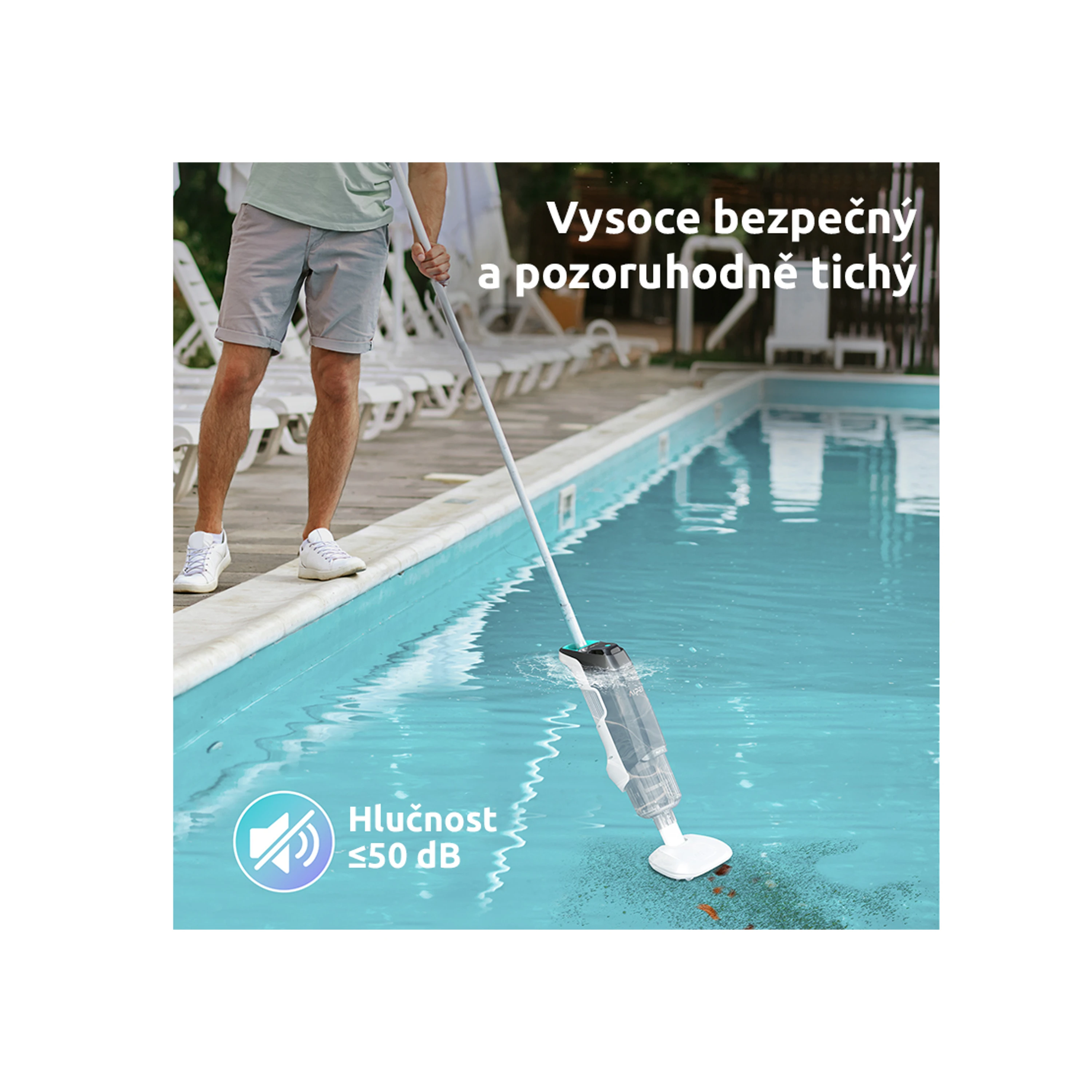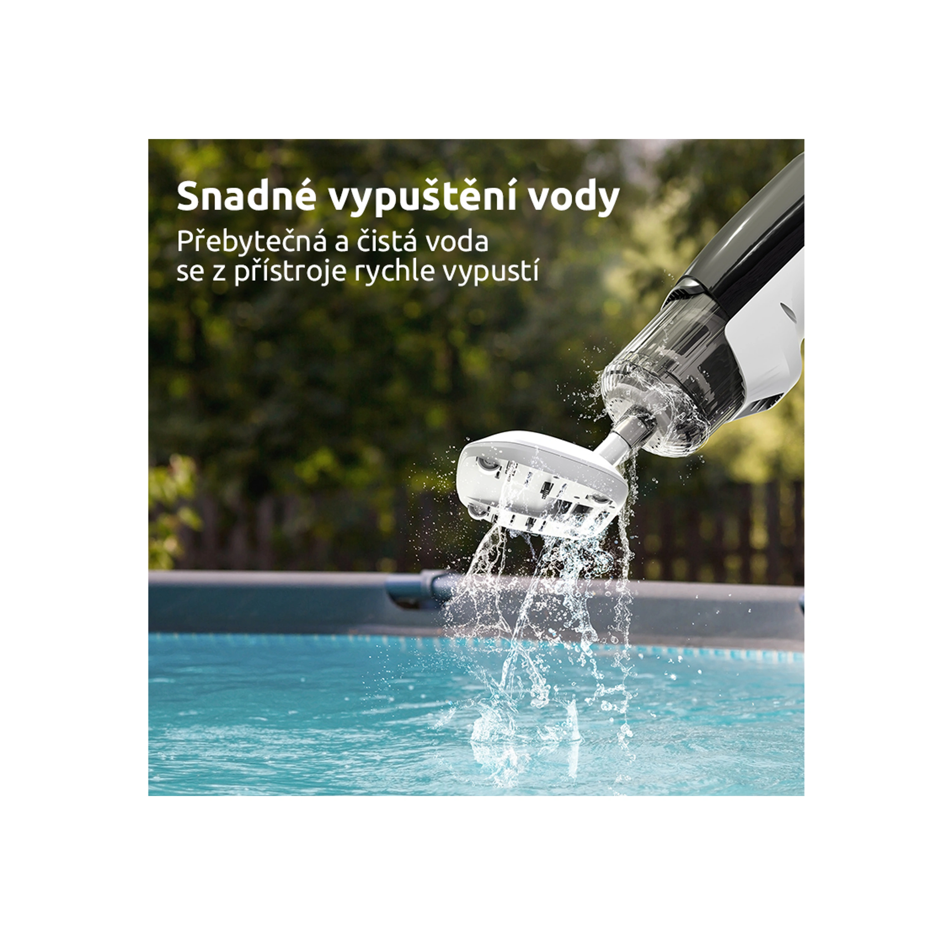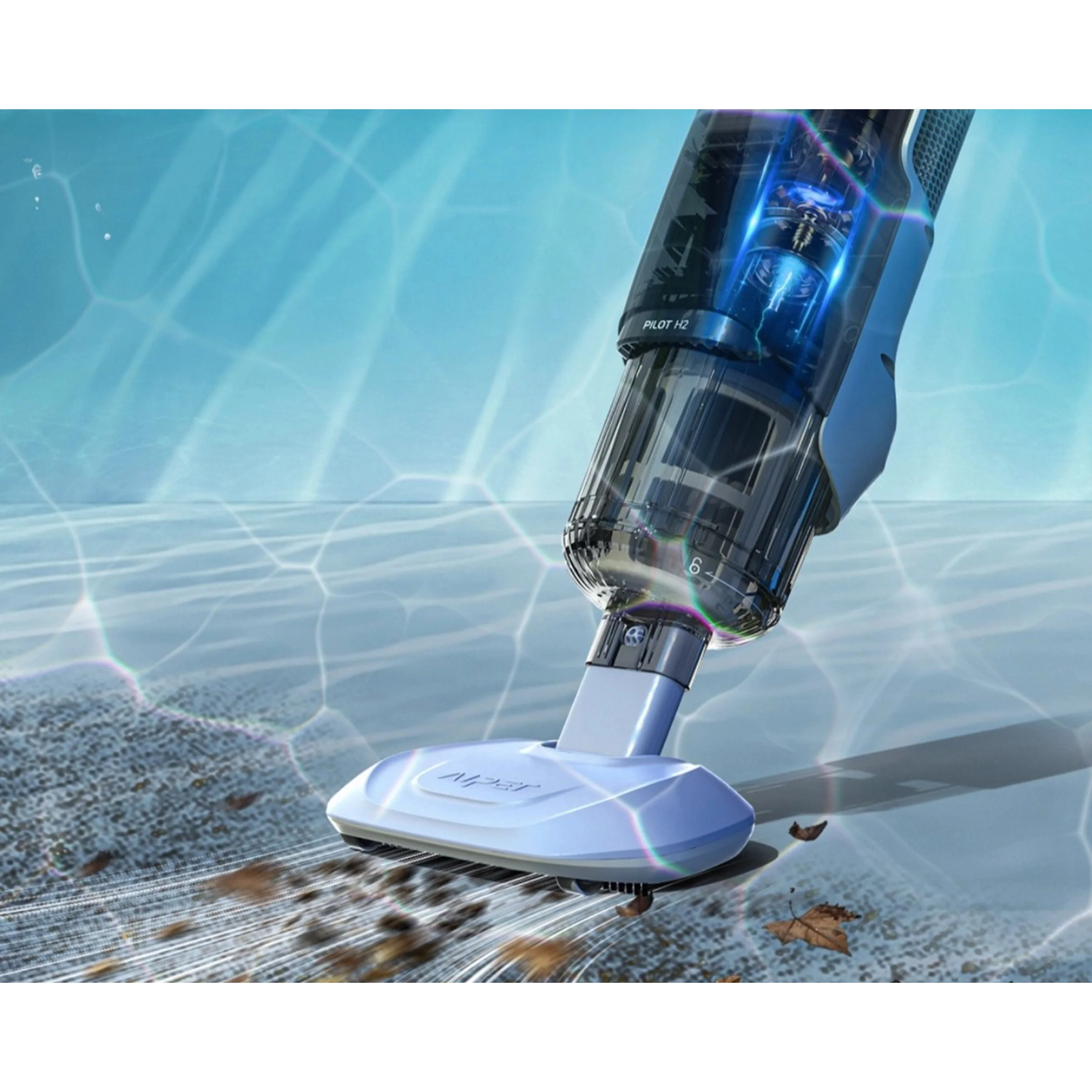 Ruční akumulátorový vysavač pro čištění dna bazénu Aiper Pilot V2 s dobíjecí Li-Ion baterií, která vydrží až 70 min. na jedno nabití. Vysavač lze společně s teleskopickou tyčí a sací hlavou zcela ponořit do vody.