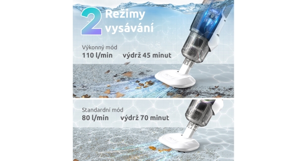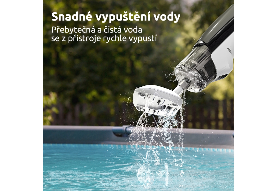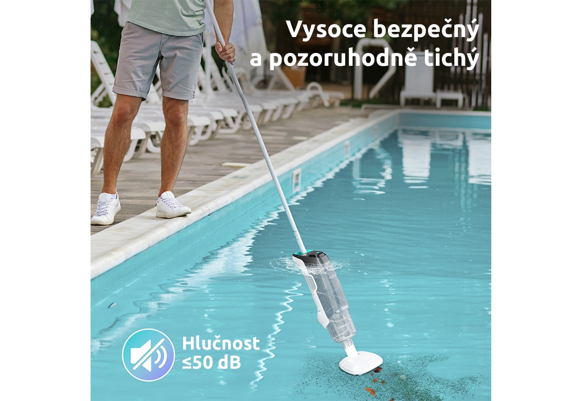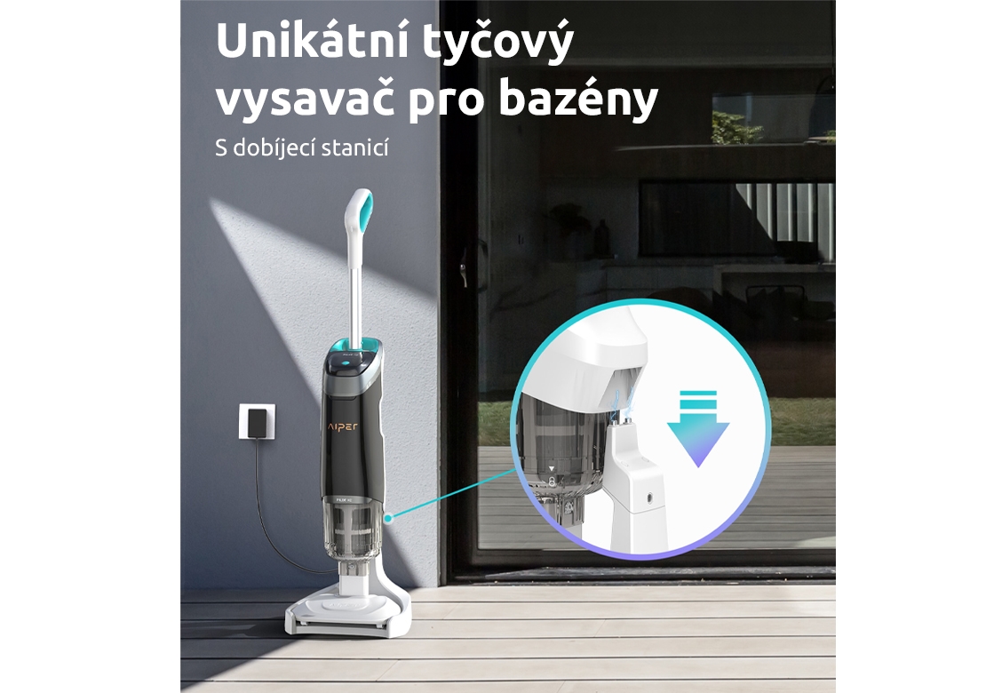 Ruční akumulátorový vysavač pro čištění dna bazénu Aiper Pilot V2 s dobíjecí Li-Ion baterií, která vydrží až 70 min. na jedno nabití. Vysavač lze společně s teleskopickou tyčí a sací hlavou zcela ponořit do vody.