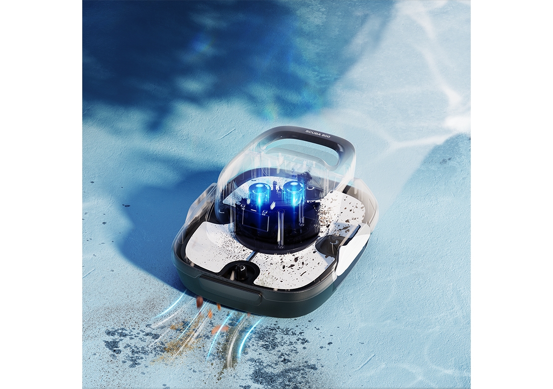 Hydrodynamická konstrukce vysavače maximalizuje kvalitu čištění díky menšímu využití pohonu a zajišťuje efektivní vyčištění podlahy bazénu za 90 minut. Vysavač se aktivuje pouhým stisknutím tlačítka, zatímco výkonné sání 75 l/min a velký objem filtru 2 l vám umožní jednoduše si užívat relaxaci při čištění bazénu.